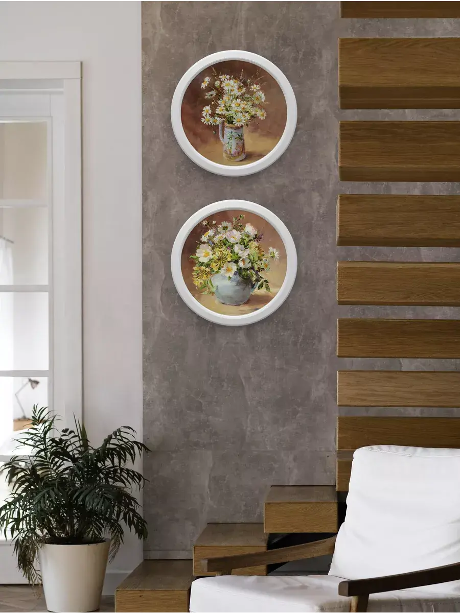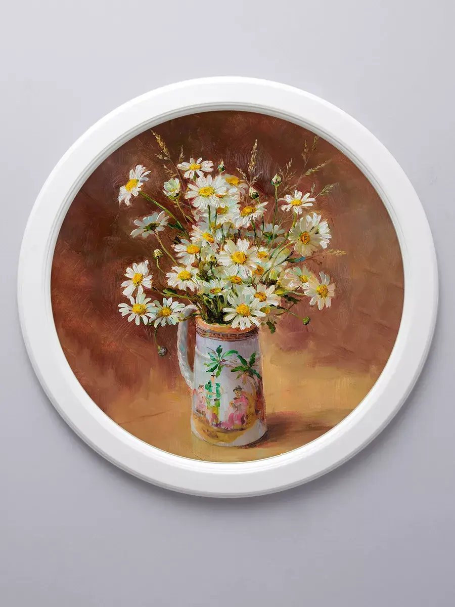 картина в круглой деревянной раме