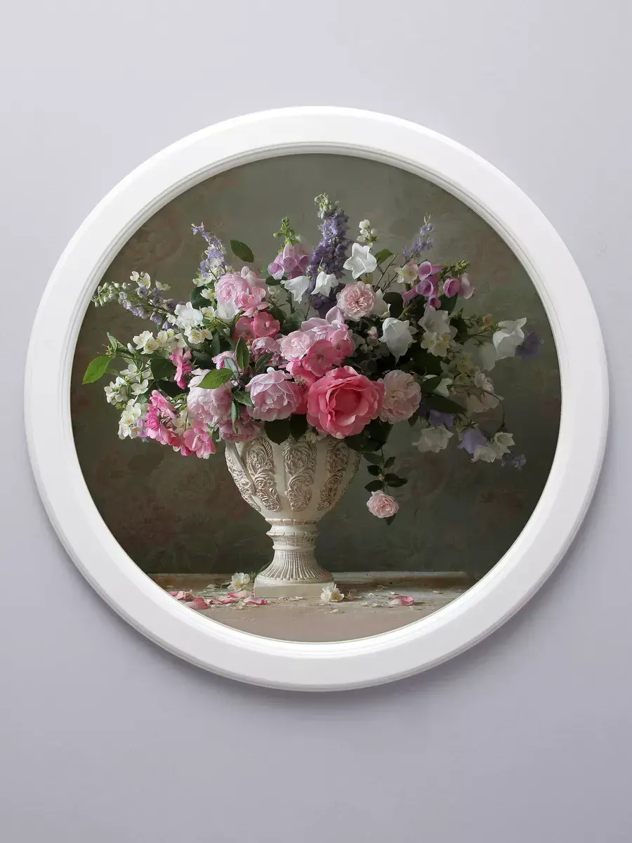 картина в круглой деревянной раме