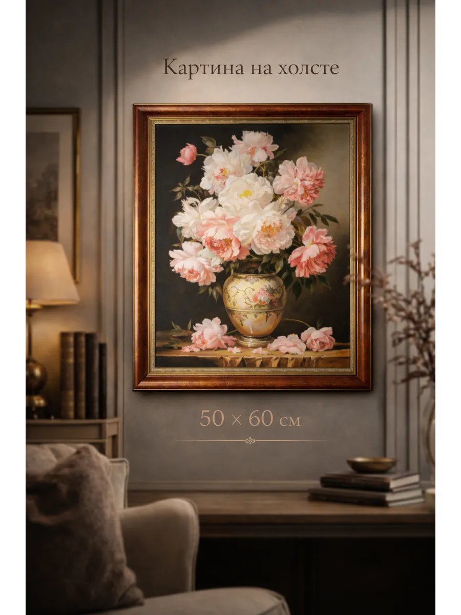 Размер 50×60 см делает картину универсальной — она гармонично смотрится как на стене самостоятельно, так и в композиции из нескольких картин.