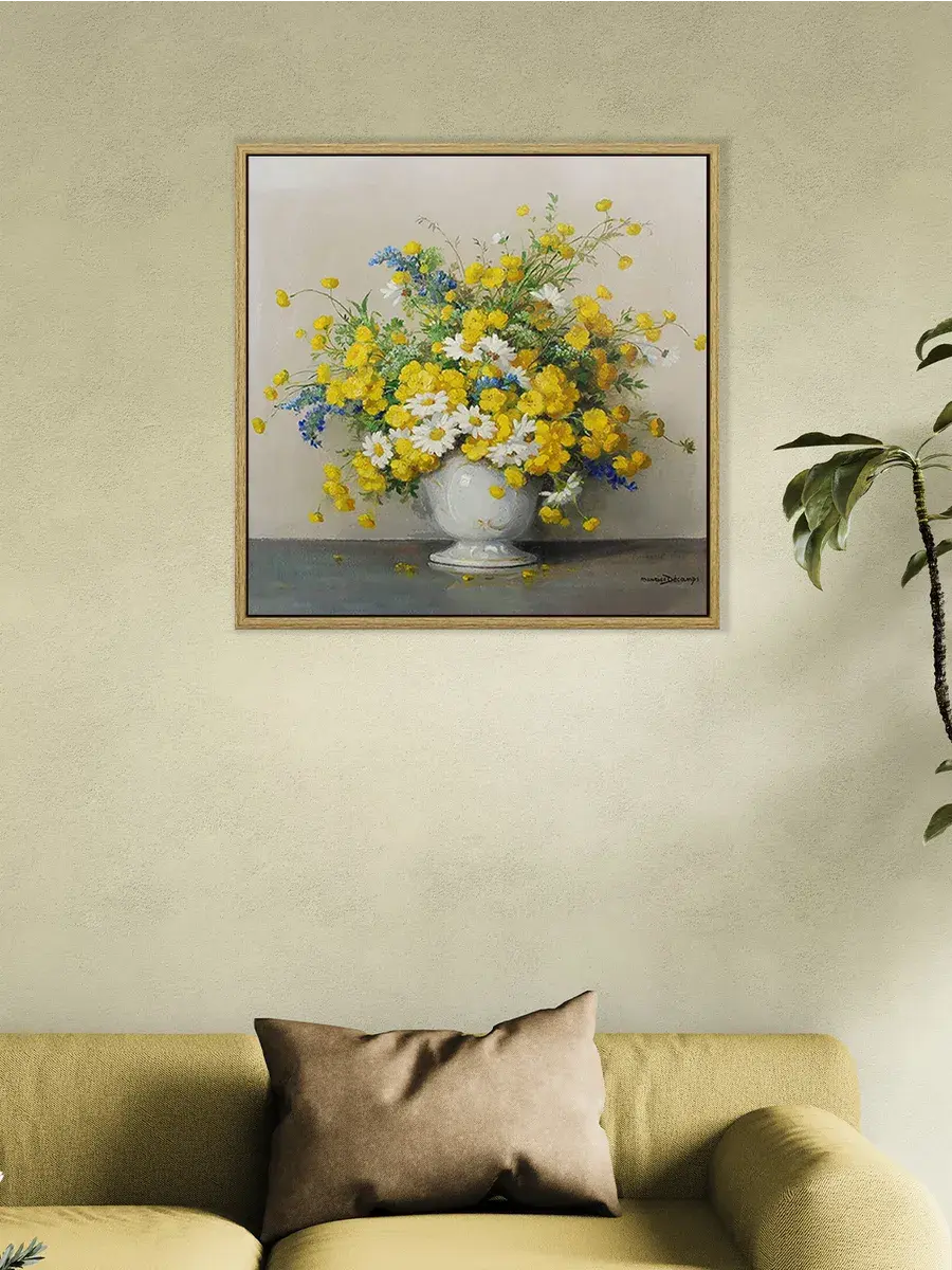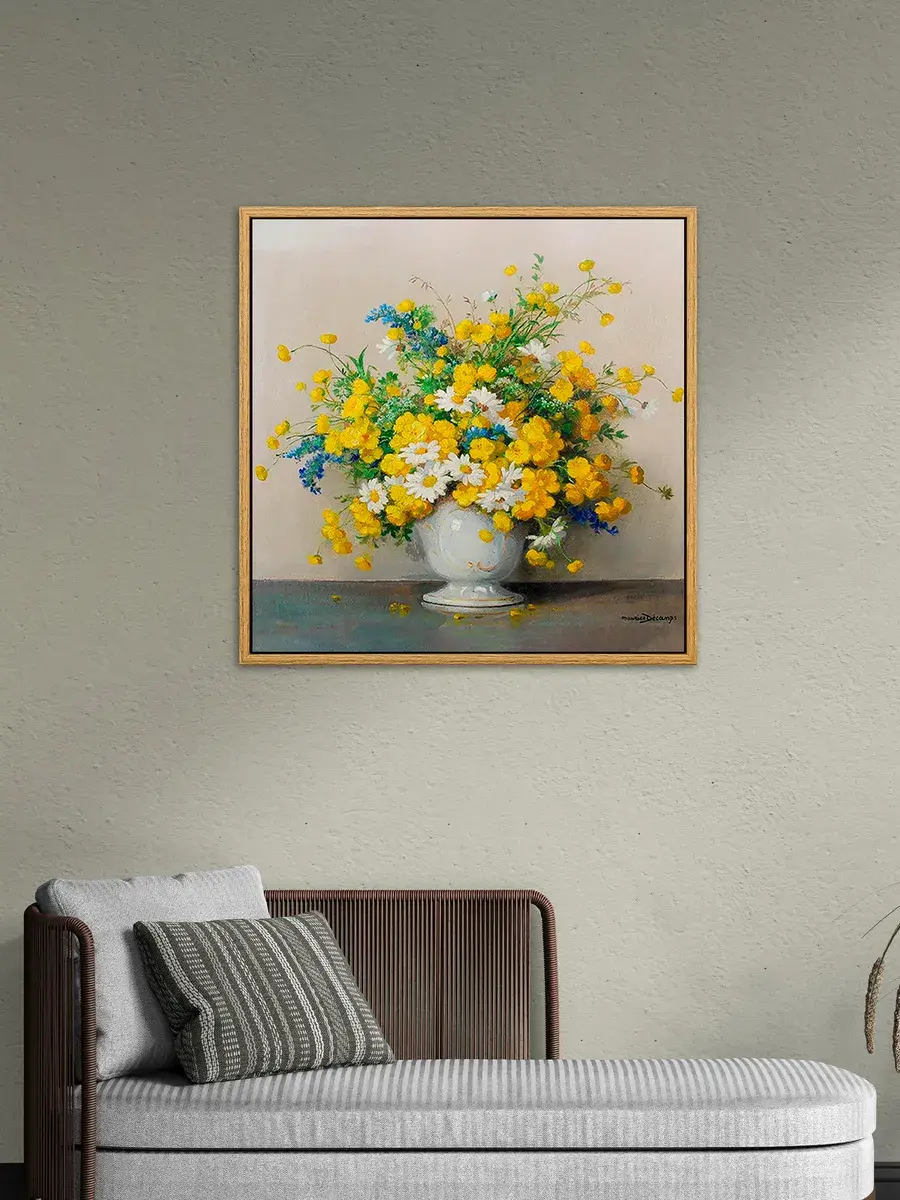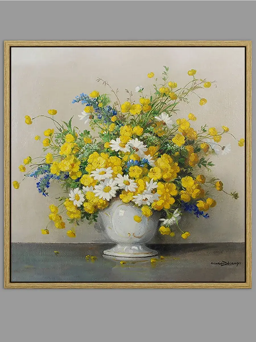 Картина "Полевой букет" от Elenadecor – это произведение искусства, которое станет настоящим украшением вашего интерьера. Натуральный холст, натянутый на подрамник с галерейной натяжкой, придает картине объемный и стильный вид. Большой формат 52*52 см позволяет ей стать центральным элементом декора в гостиной, спальне или офисе. Изысканный рисунок с изображением букета ромашек создает атмосферу спокойствия и умиротворения, внося в ваш дом нотки классического и современного стиля одновременно. Картина на подрамнике "Полевой букет" – это не просто украшение, а отражение вашего вкуса и стремления к красоте. Лаконичный багет подчеркивает изящество изображения, делая картину еще более привлекательной.