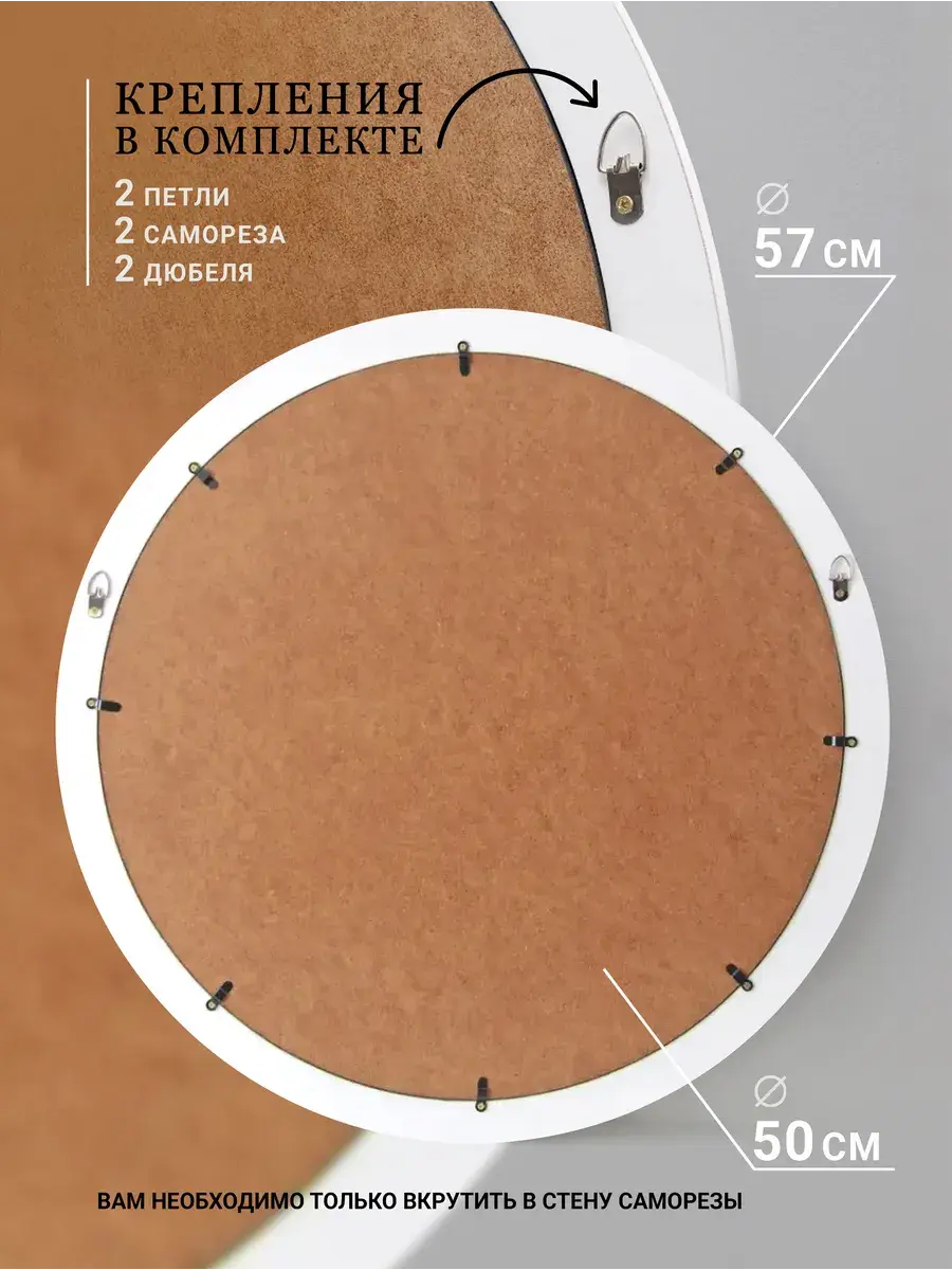 Множество вариантов дает возможность создать собственную коллекцию. Рама изготовлена из цельного листа МДФ 16 мм, не имеет зазоров и стыков. Окрашена экологичной акриловой эмалью в белый цвет. Крепление для стены в комплекте. Диаметр картины 57 см.
