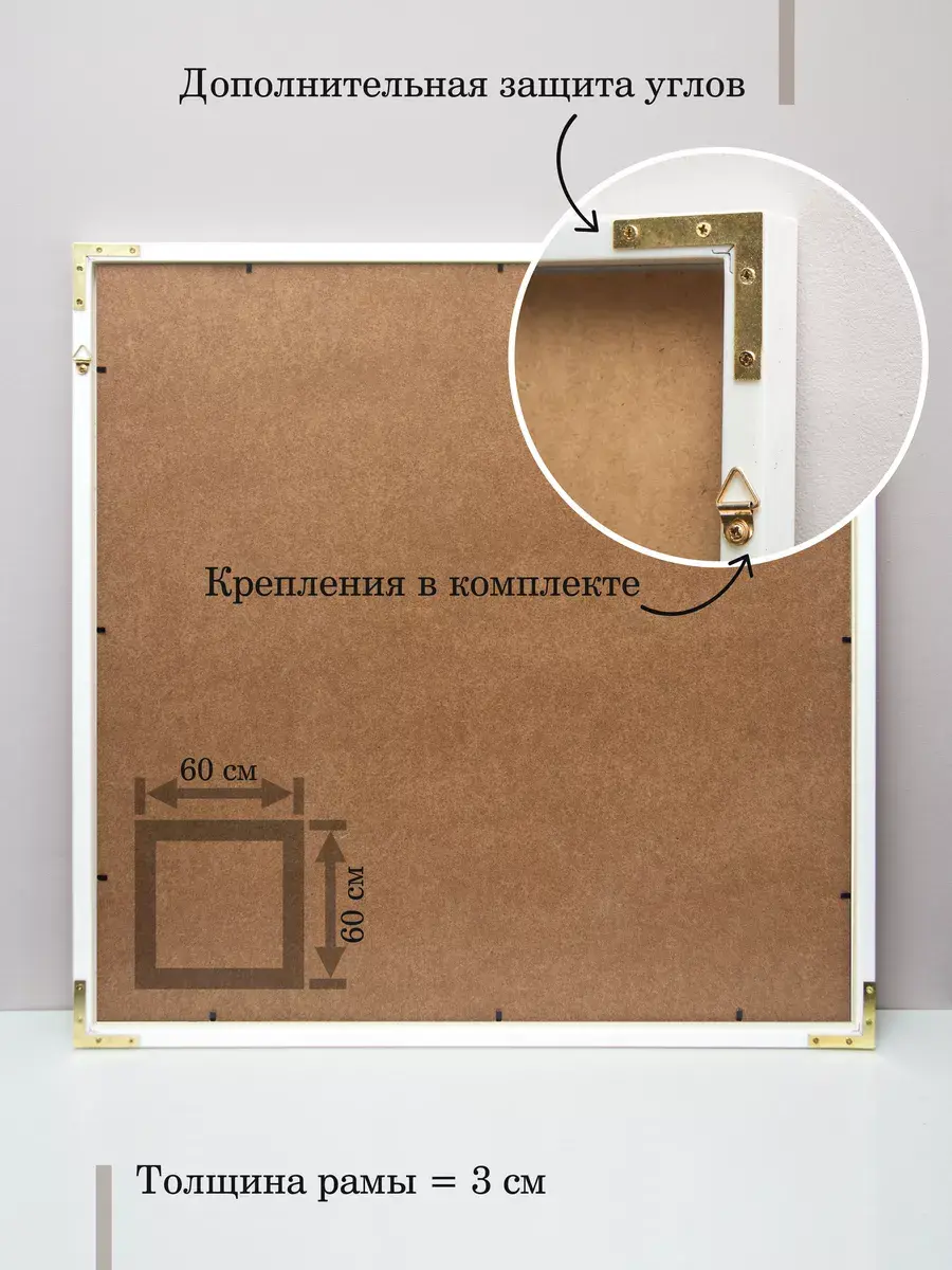 Картина в строгой раме, напечатана на натуральном холсте с декорированием золотой поталью, холст наклеен на ХДФ и покрыт лаком для защиты от провисания и выцветания. Размер картины в раме 60х60 см. Крепление для стены в комплекте, на раме зубчатый крепеж. Картина упакована в коробку.