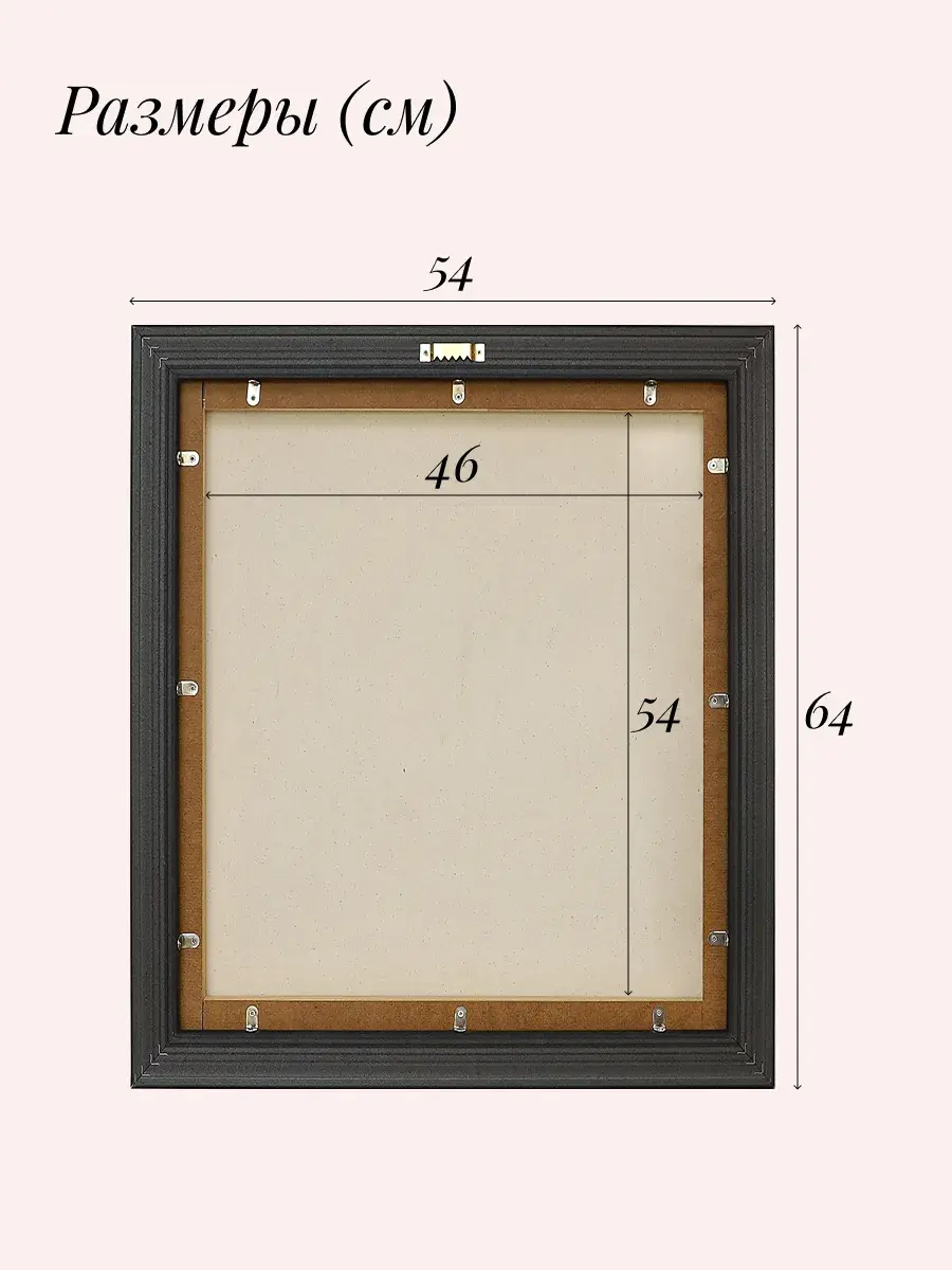 Благодаря креплению на обратной стороне, ее легко повесить на стену и наслаждаться ее красотой. Размер картины с рамой 64*54 см