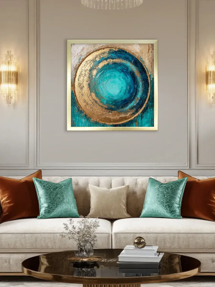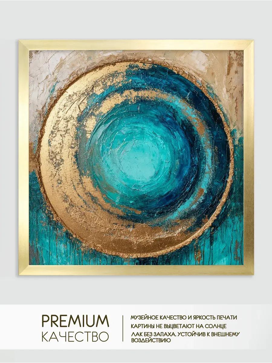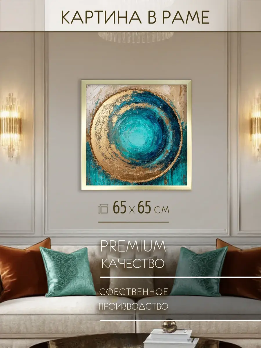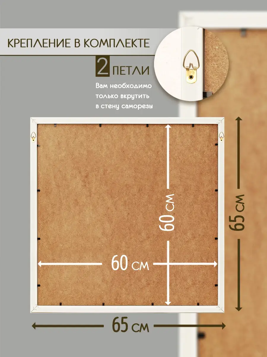 Картина напечатана на натуральном холсте, подрисовка золотой патиной, покрыта лаком. Основа для холста из ХДФ, что исключает провисание холста. Размер картины с рамой 65*65 см