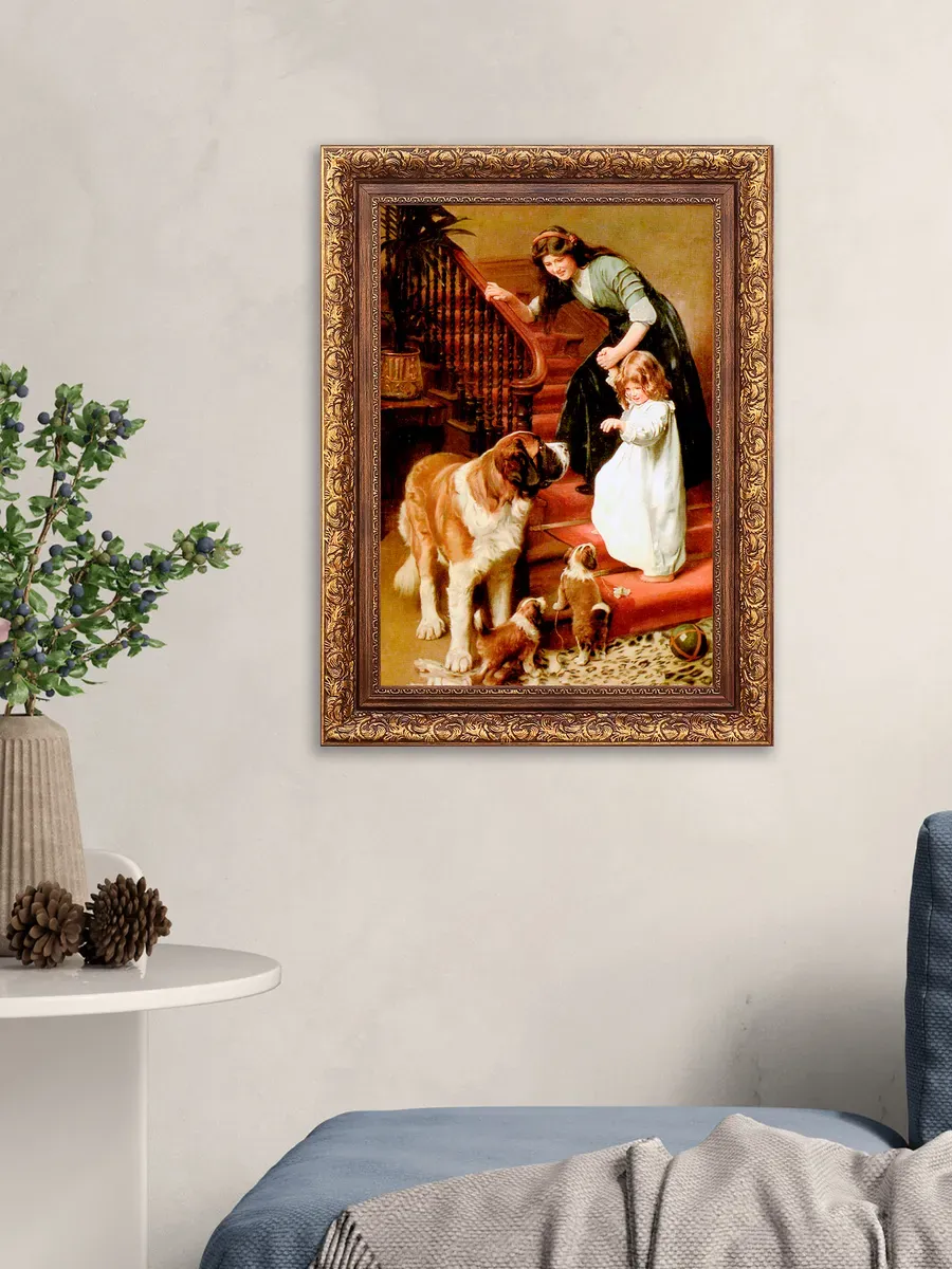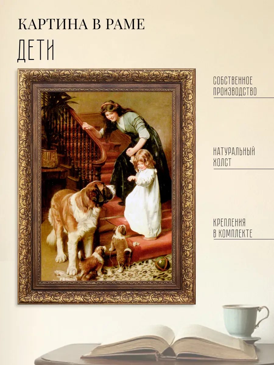 Серия картин Английского художника Артура Джона Элсли (1860-1952) и Французский художник Эмиль Вернон ( emile vernon 1872 — 1919) в классической раме на натуральном холсте "Дети" станет прекрасным украшением интерьера квартиры, дачи или загородного дома. На картинах изображены портреты детей с животными и жанровые сценки, они органично смотрятся сами по себе, в паре, а также в композиции всей коллекции. Интерьерная картина на холсте имитирует масляную живопись, идеально впишется в дизайн спальни, гостиной, кухни, детской, прихожей и других помещений. Картины для создания уютной и домашней атмосферы. Репродукция выполнена высококачественной печатью, устойчивой к выцветанию, на натуральном холсте, покрыта лаком без запаха. Для защиты от провисания холст наклеен на хдф. Рама для картины классическая золотая изготовлена из полиуретана. Крепление для стены в комплекте. Детская искренность, дружба, наивность, непосредственность и радость, изображенные на картине, привнесут романтичность и особую атмосферу пространству.