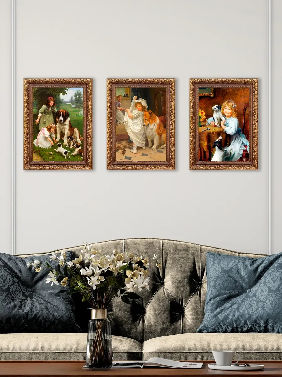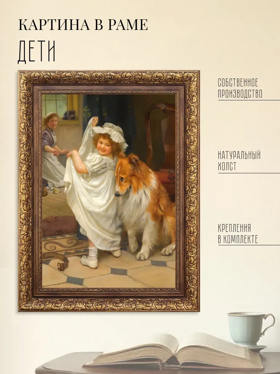 Серия картин Английского художника Артура Джона Элсли (1860-1952) и Французский художник Эмиль Вернон ( emile vernon 1872 — 1919) в классической раме на натуральном холсте "Дети" станет прекрасным украшением интерьера квартиры, дачи или загородного дома. На картинах изображены портреты детей с животными и жанровые сценки, они органично смотрятся сами по себе, в паре, а также в композиции всей коллекции. Интерьерная картина имитирует масляную живопись, идеально впишется в дизайн спальни, гостиной, кухни, детской, прихожей и других помещений. Картины для создания уютной и домашней атмосферы. Репродукция выполнена высококачественной печатью, устойчивой к выцветанию, на натуральном холсте, покрыта лаком без запаха. Для защиты от провисания холст наклеен на хдф. Рама для картины классическая золотая изготовлена из полиуретана. Крепление для стены в комплекте. Детская искренность, дружба, наивность, непосредственность и радость, изображенные на картине, привнесут романтичность и особую атмосферу пространству.