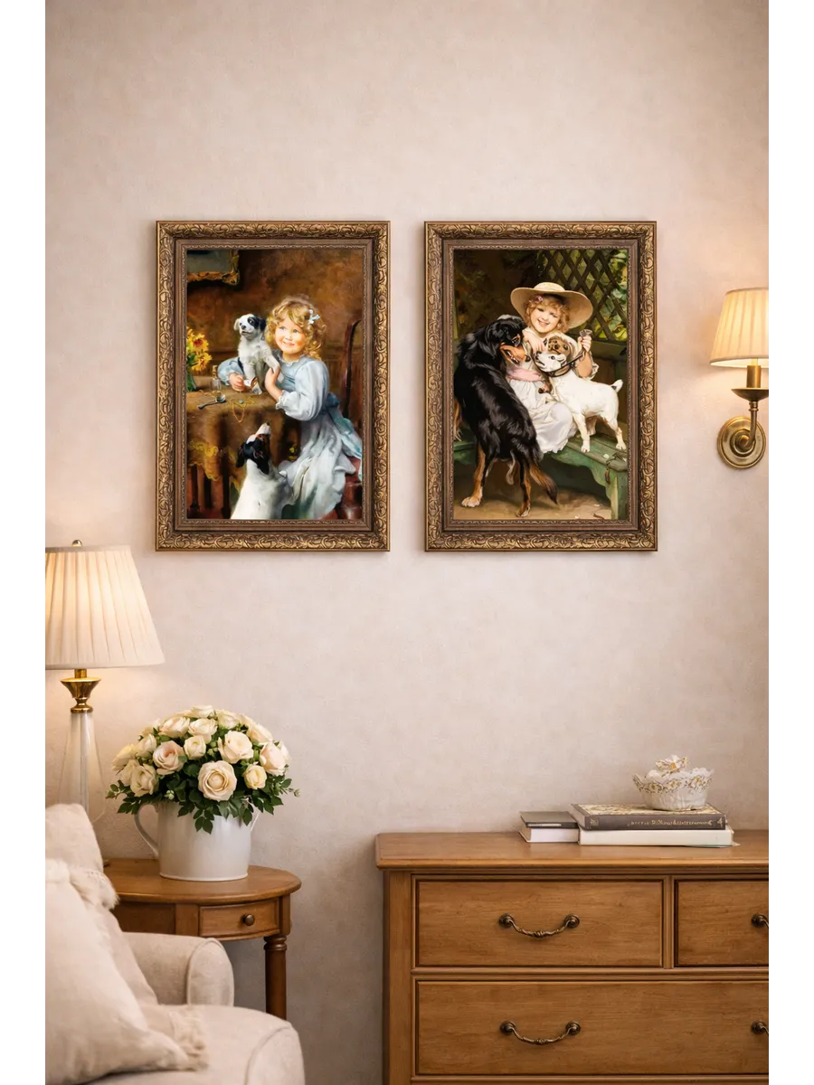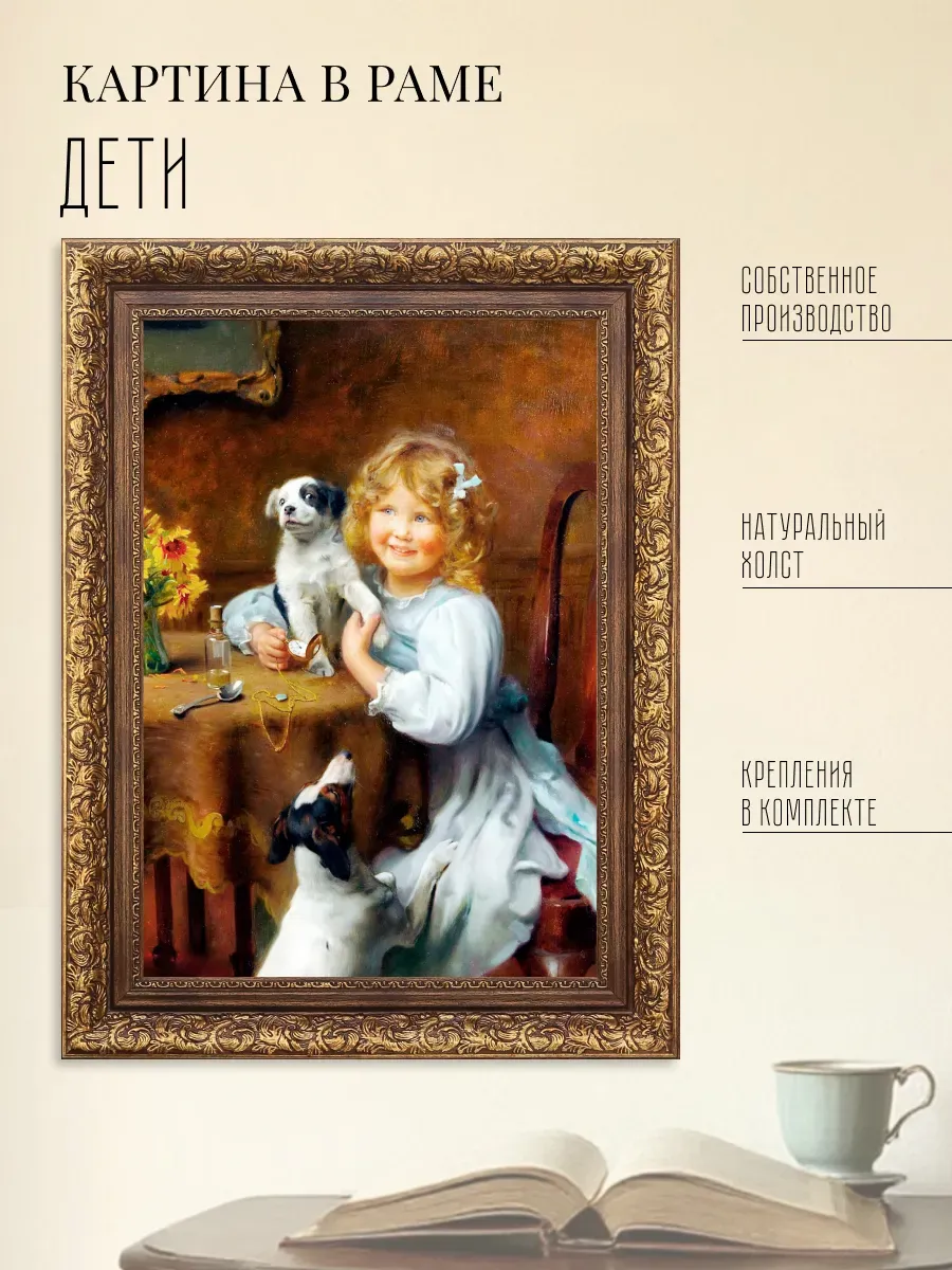 Серия картин Английского художника Артура Джона Элсли (1860-1952) и Французский художник Эмиль Вернон ( emile vernon 1872 — 1919) в классической раме на натуральном холсте "Дети" станет прекрасным украшением интерьера квартиры, дачи или загородного дома. На картинах изображены портреты детей с животными и жанровые сценки, они органично смотрятся сами по себе, в паре, а также в композиции всей коллекции. Интерьерная картина имитирует масляную живопись, идеально впишется в дизайн спальни, гостиной, кухни, детской, прихожей и других помещений. Картины для создания уютной и домашней атмосферы. Репродукция выполнена высококачественной печатью, устойчивой к выцветанию, на натуральном холсте, покрыта лаком без запаха. Для защиты от провисания холст наклеен на хдф. Рама для картины классическая золотая изготовлена из полиуретана. Крепление для стены в комплекте. Детская искренность, дружба, наивность, непосредственность и радость, изображенные на картине, привнесут романтичность и особую атмосферу пространству.