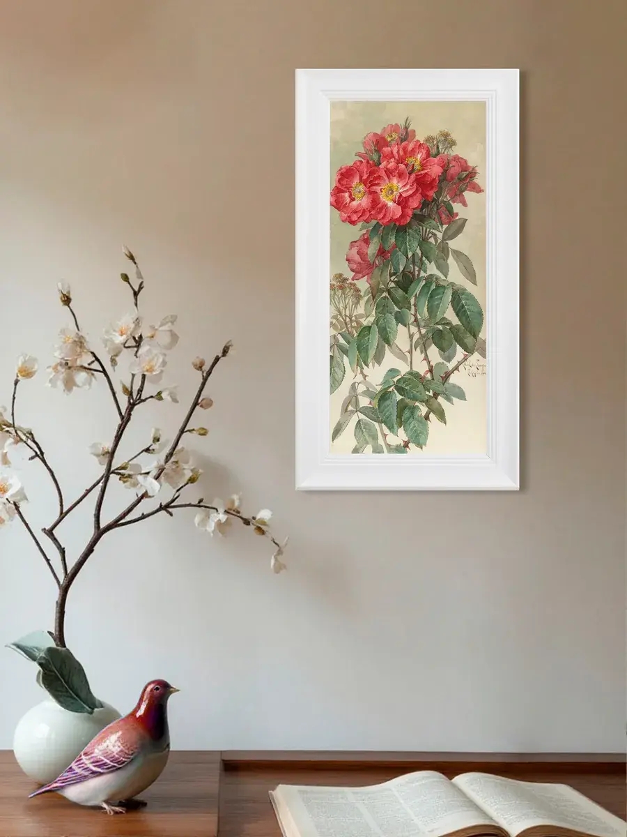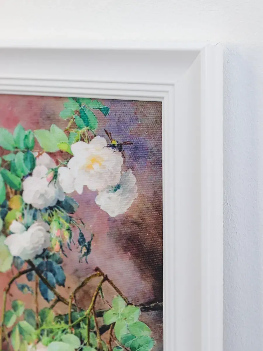 Картина напечатана на натуральном холсте, покрыта лаком. Лаконичный белый багет доббавляет картине законченный нарядный вид. Размер картины в раме 21*40 см.