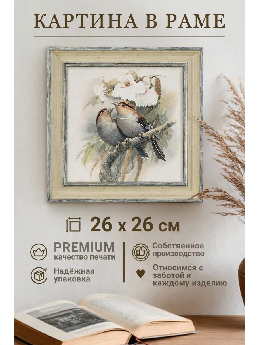 Картина настенная "Винтажные птички" станет прекрасным дополнением к любому интерьеру, наполняя его уютом и спокойствием. Нежность сюжетов с изображением цветов и растений в бежевых, серых и розовых тонах создает атмосферу весеннего настроения и умиротворения. Картина выполнена на хлопковом холсте, натянутом на качественную основу из ХДФ, и обрамлена в красивую лаконичную раму. Цифровая печать обеспечивает высокое качество изображения, а удобный крепеж, входящий в комплект, позволит быстро и легко повесить картину на стену. "Винтажные птички" станет прекрасным подарком для бабушки, мамы или подруги на 8 марта, новоселье или день рождения, наполняя их дом теплом и красотой.