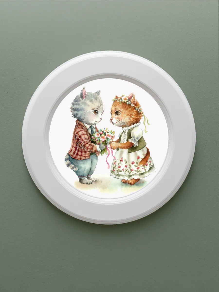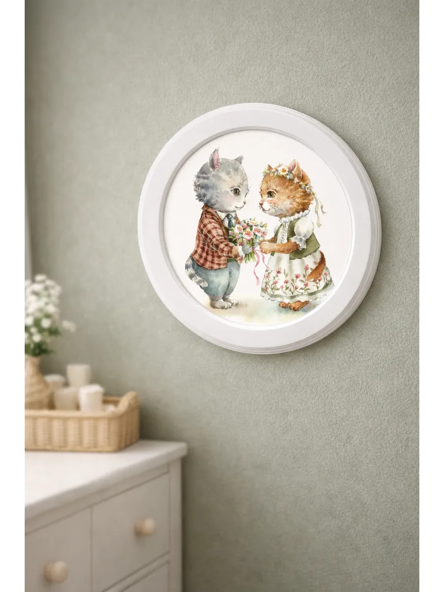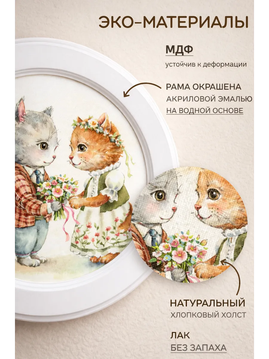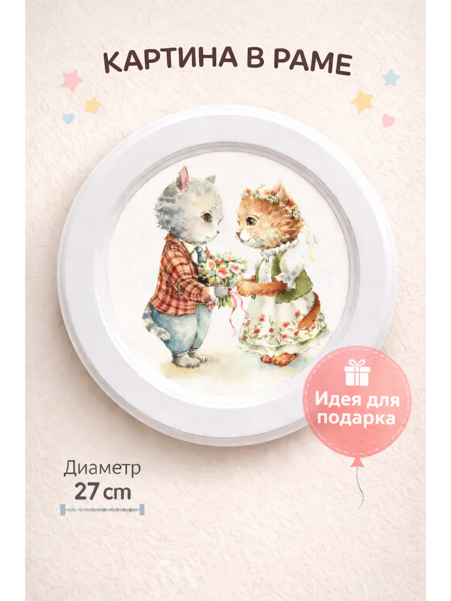 Эта интерьерная картина с милыми котиками в классических образах — яркий, но при этом нежный акцент для детской комнаты, кухни или спальни.
