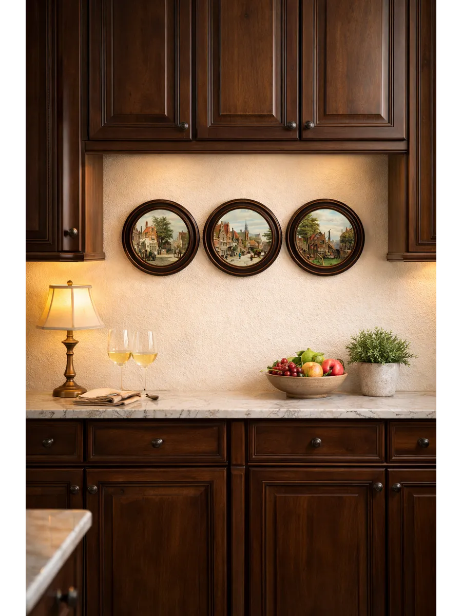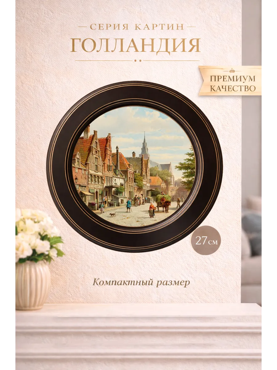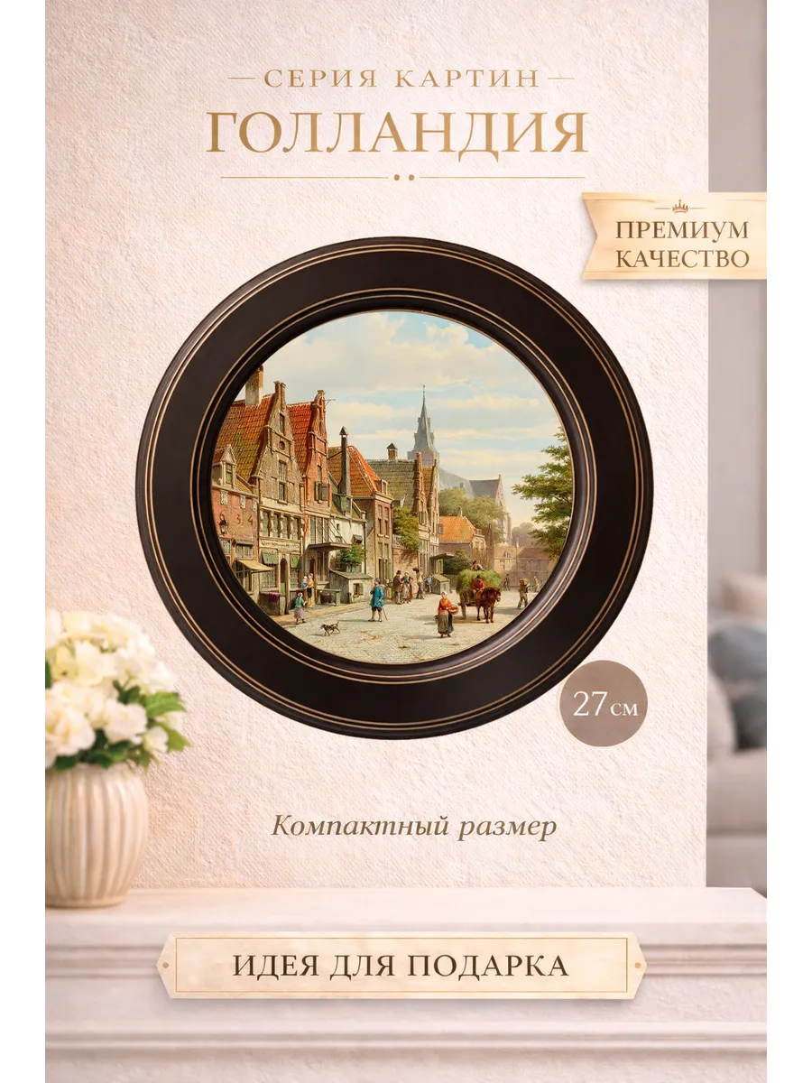 Создайте атмосферу европейского уюта в доме с декоративной картиной из серии «Голландия». Компактная круглая картина диаметром 27 см идеально подходит для небольших стен, простенков, кухни, кабинета или прихожей. Изящный сюжет старинного европейского города придаёт интерьеру благородство и создаёт ощущение теплоты и уюта.