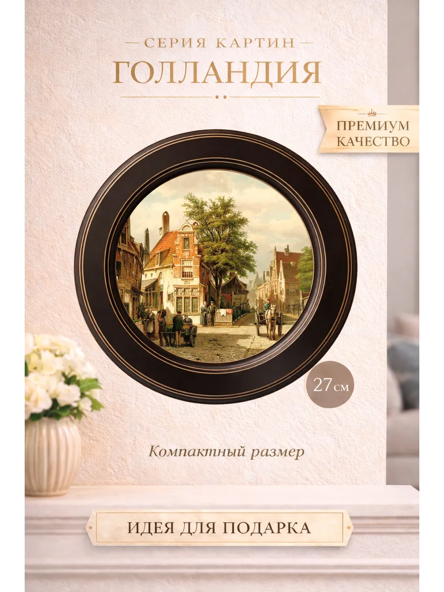 Создайте атмосферу европейского уюта в доме с декоративной картиной из серии «Голландия». Компактная круглая картина диаметром 27 см идеально подходит для небольших стен, простенков, кухни, кабинета или прихожей. Изящный сюжет старинного европейского города придаёт интерьеру благородство и создаёт ощущение теплоты и уюта.