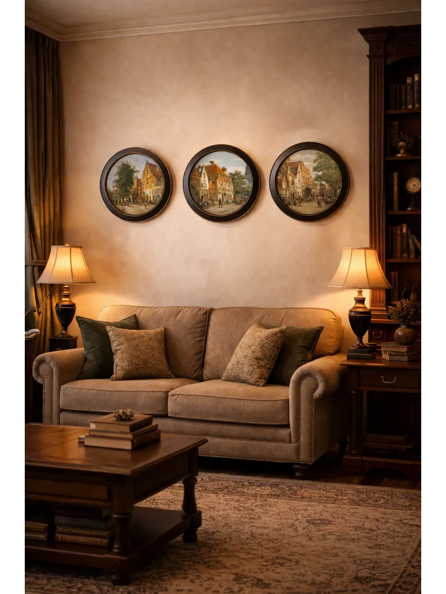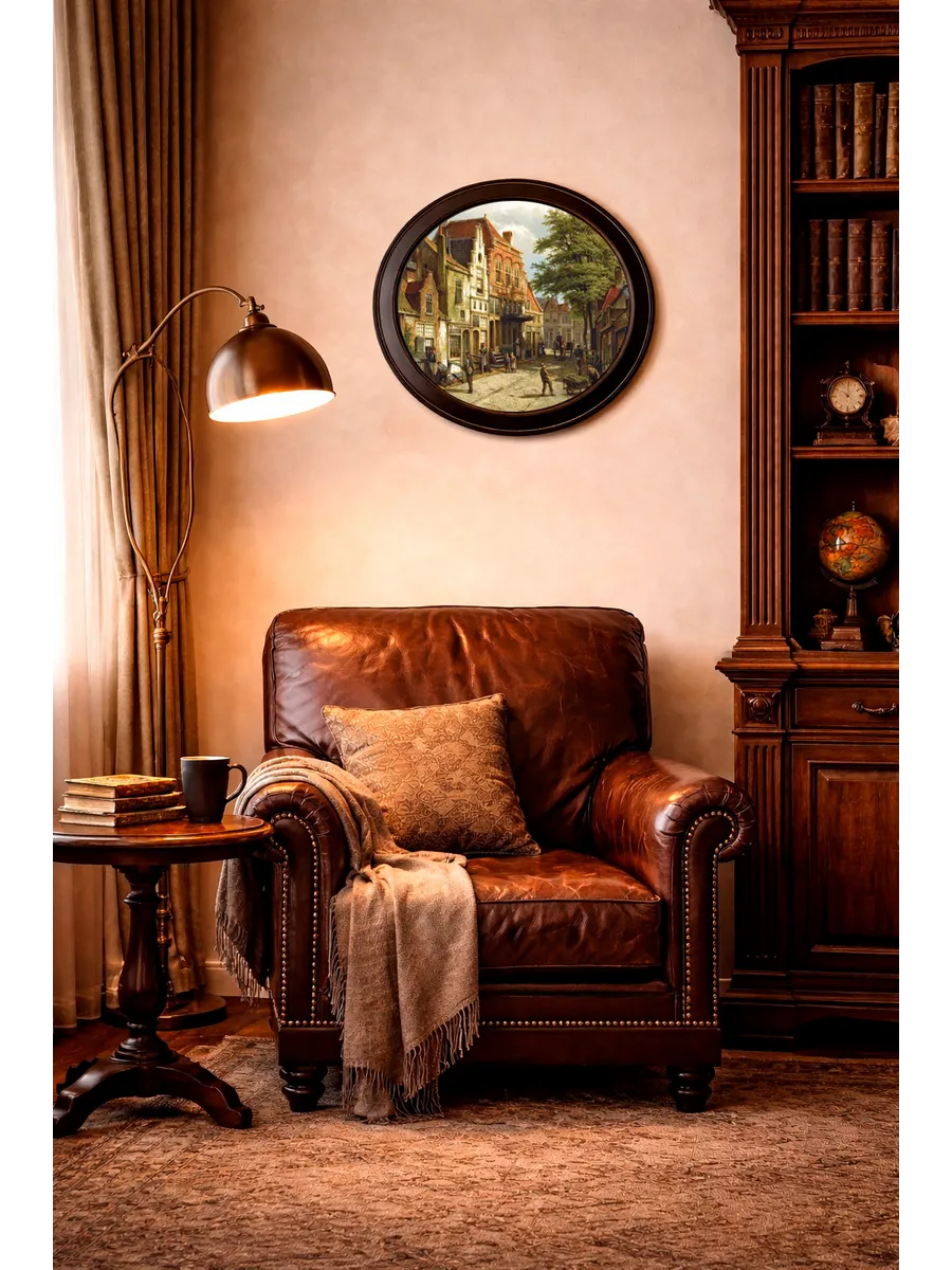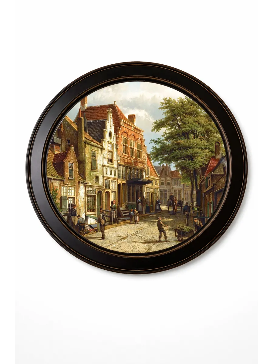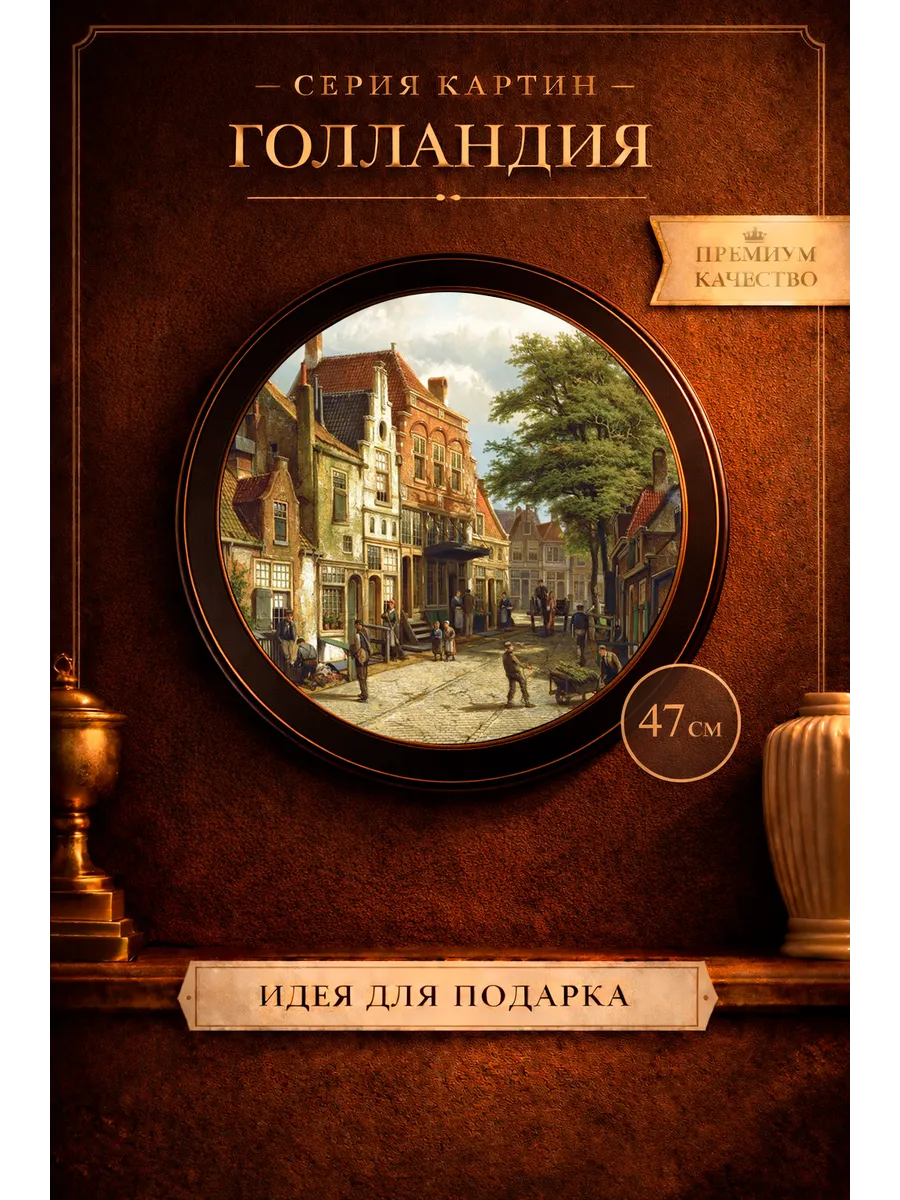 Картина на натуральном холсте из серии «Голландия» — это стильный интерьерный декор, который добавит дому атмосферу европейской классики и уюта. Сюжеты вдохновлены старинными улочками Голландии, архитектурой европейских городов и спокойной атмосферой тихих городских пейзажей. Такая круглая картина на стену станет эффектным акцентом в интерьере гостиной, спальни, кабинета, кухни или прихожей.