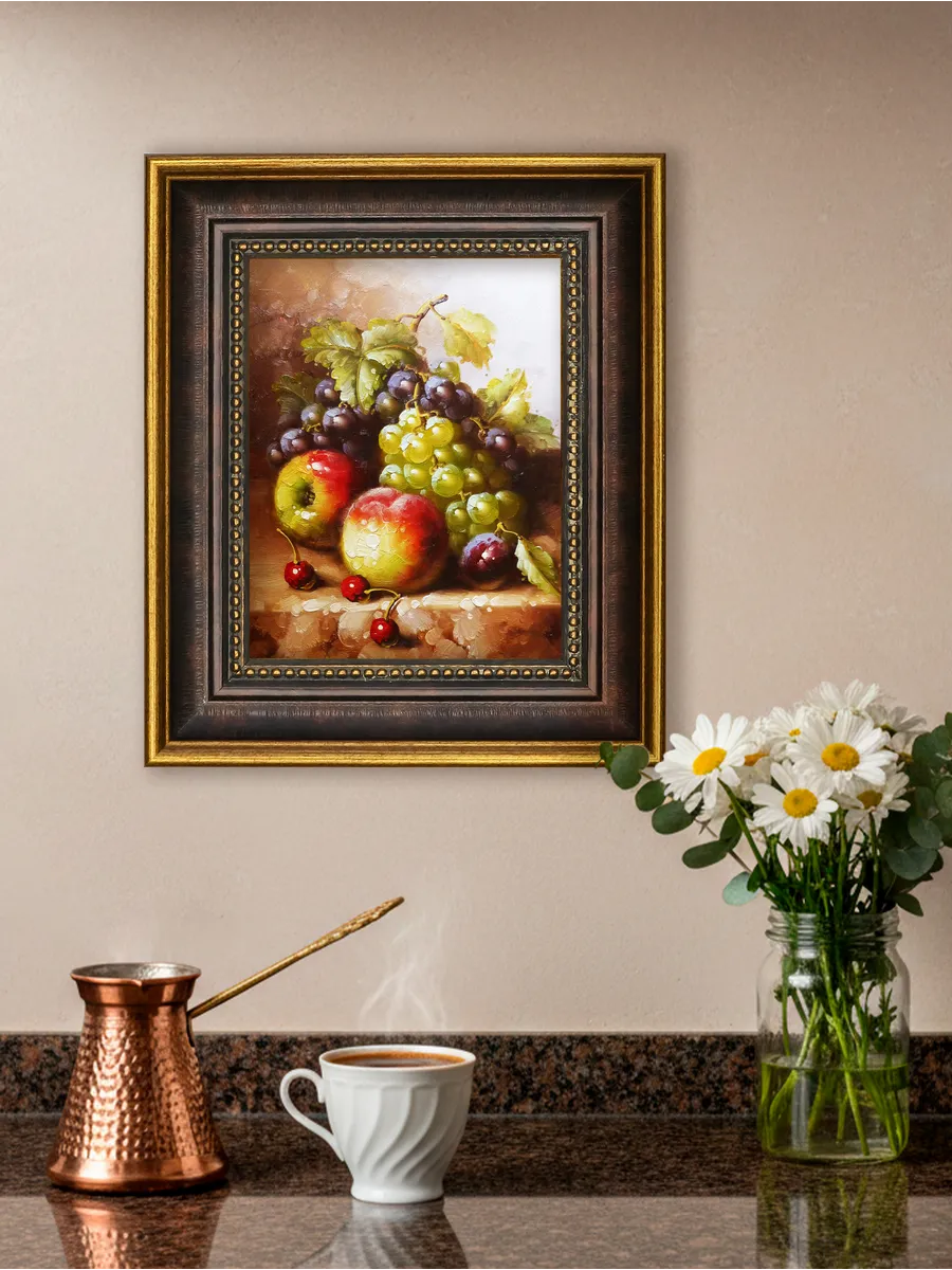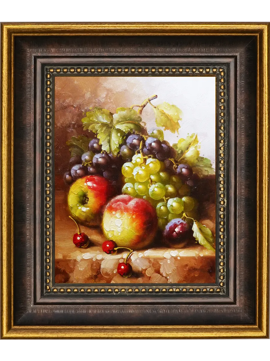 Картина "Натюрморт с виноградом" от Elenadecor – это одна из картин удивительно красивой серии, которая добавит уют и спокойствие в ваш дом. Эта интерьерная репродукция, выполненная в технике цифровой печати на хлопковом холсте, представлена в изящной багетной раме, что придает ей особый шарм. Размер картины 18х21 см, что делает ее идеальным дополнением к домашней коллекции. Натюрморт, выполненный в винтажном стиле, в теплых тонах летнего зноя, станет прекрасным подарком бабушке, любимой или подруге на 8 марта, день рождения или просто так. Картина поставляется с креплением, что упрощает ее установку на стену.