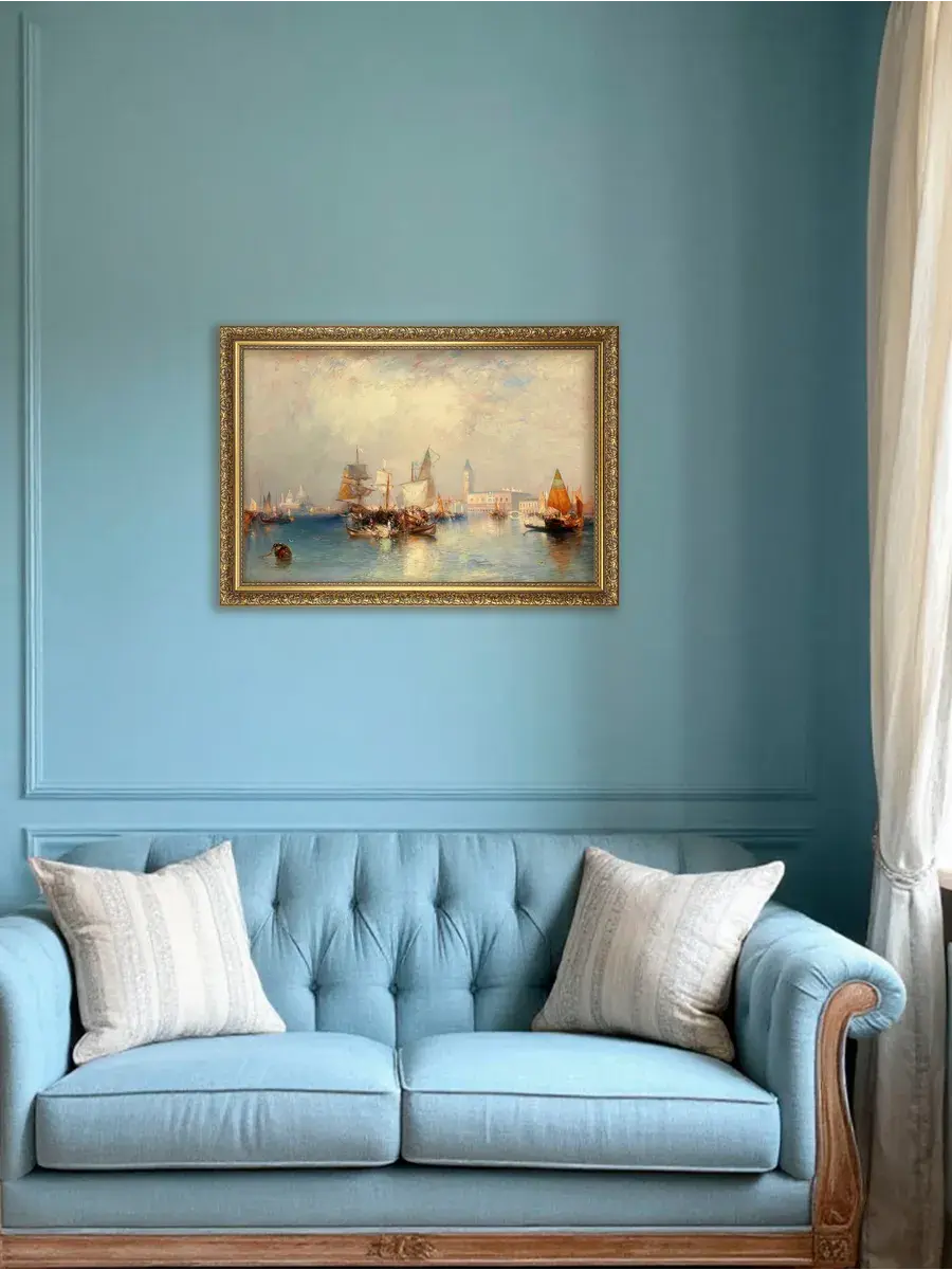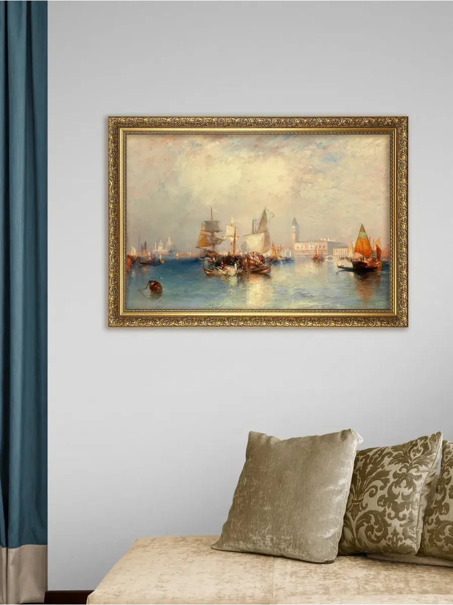 Репродукция картины "Grand Canal" Venice, 1901, Томас Моран от Elenadecor станет настоящим украшением вашего интерьера, наполняя его атмосферой спокойствия и умиротворения. Эта интерьерная репродукция, выполненная с галерейным качеством, представляет собой цифровую печать на хлопковом холсте, наклеенном на прочную основу из ХДФ. Размер картины 47*67 см, что делает ее идеальным дополнением к любому пространству, будь то гостиная, спальня или кабинет. Картина поставляется в стильной багетной раме и уже оборудована креплением, что упрощает ее установку на стену. "Grand Canal" - это не просто украшение, а возможность прикоснуться к коллекции произведений мировых художников, создавая в своем доме атмосферу утонченности и культурного наследия.