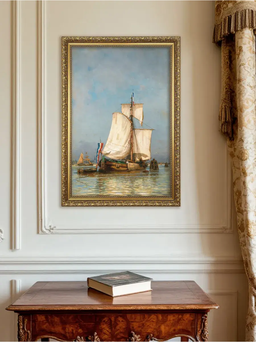Репродукция картины Алексея Боголюбова "Два парусника" от Elenadecor - это прекрасный способ добавить нотку умиротворения и релакса в ваш интерьер. Эта репродукция с высоким качеством, выполненная в технике цифровой печати, изображает завораживающий морской пейзаж, созданный великим художником А.Боголюбовым. Картина размером 47*67 см в классическом багете станет прекрасным дополнением к любому интерьеру, привнося в него атмосферу спокойствия и уюта. Благодаря креплению, предусмотренному в комплекте, вы легко сможете повесить картину на стену и наслаждаться ее красотой. "Два парусника" станет прекрасным подарком для любителей искусства, а также для тех, кто ценит красоту и гармонию в своем доме. Эта картина станет прекрасным дополнением к вашей коллекции произведений великих художников.
