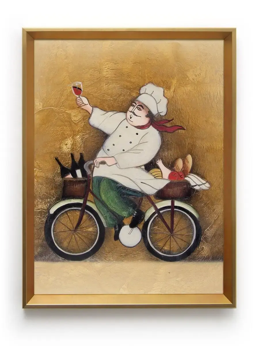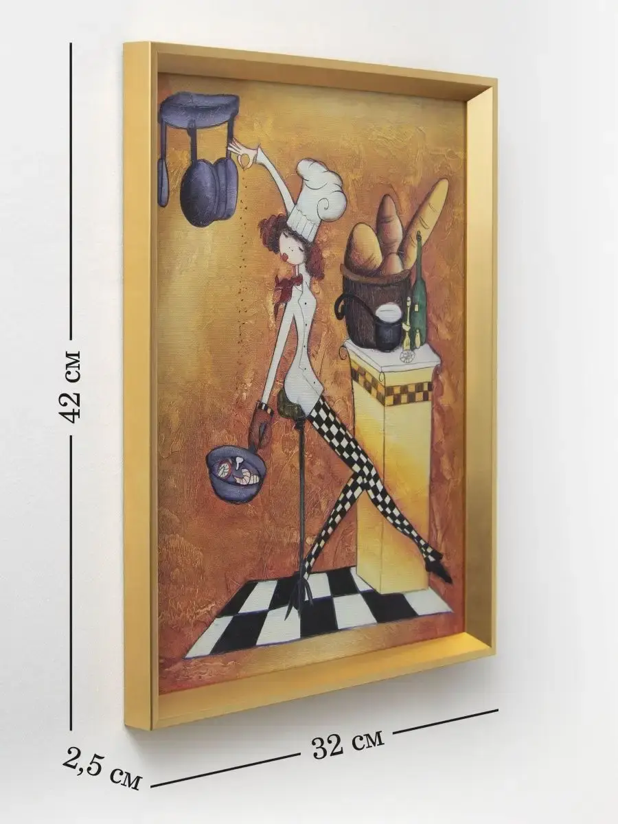 Настенный декор - картина с винтажными поварами в золотистой багетной раме. Картина напечатана на натуральном холсте, покрыта матовым лаком станет прекрасным дополнением и украшением интерьера. Картина украсит и дополнит интерьер кухни, столовой, кафе. Милый сувенир на Пасху, новый год, 8 марта или просто подарок без повода. Рама изготовлена из полиуретана. Размер картины 32*42 см размер изображения 29*39 см. Крепление для стены в комплекте.
