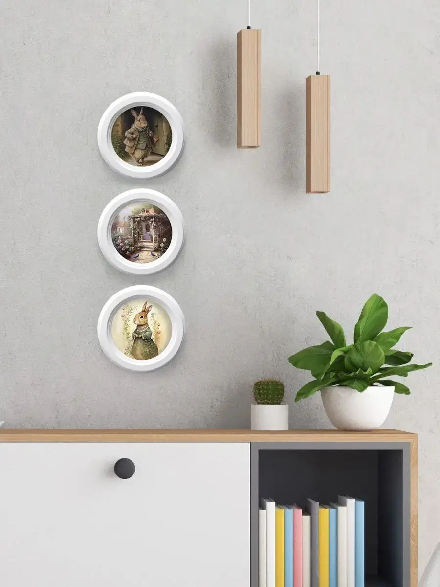 Картины напечатаны на натуральном холсте, покрыты матовым лаком в круглой раме станет прекрасным украшением интерьера. Множество вариантов дает возможность создать собственную коллекцию. Рама изготовлена из цельного листа МДФ 16 мм, не имеет зазоров и стыков. Окрашена экологичной акриловой эмалью в белый, коричневый, мятный цвет. Диаметр картины 17,5 см, диаметр изображения 12 см.
