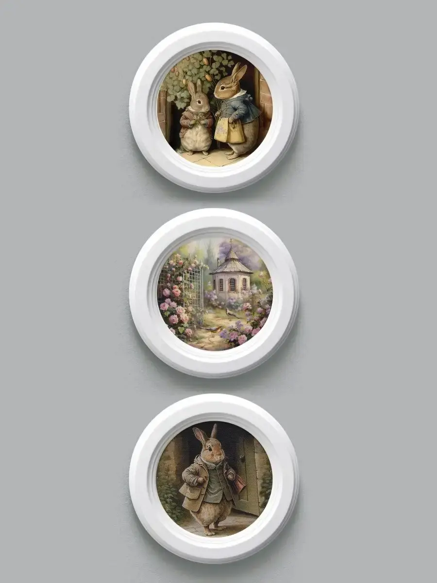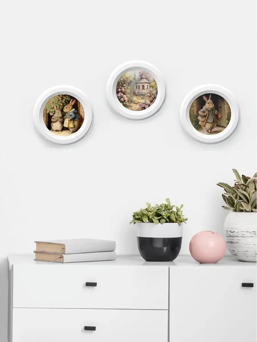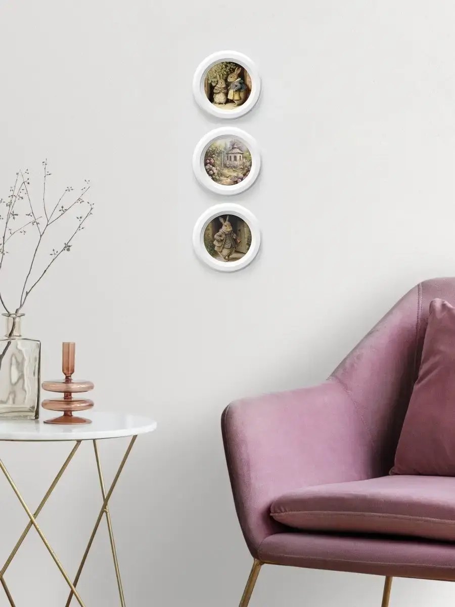 3 картины в круглой раме