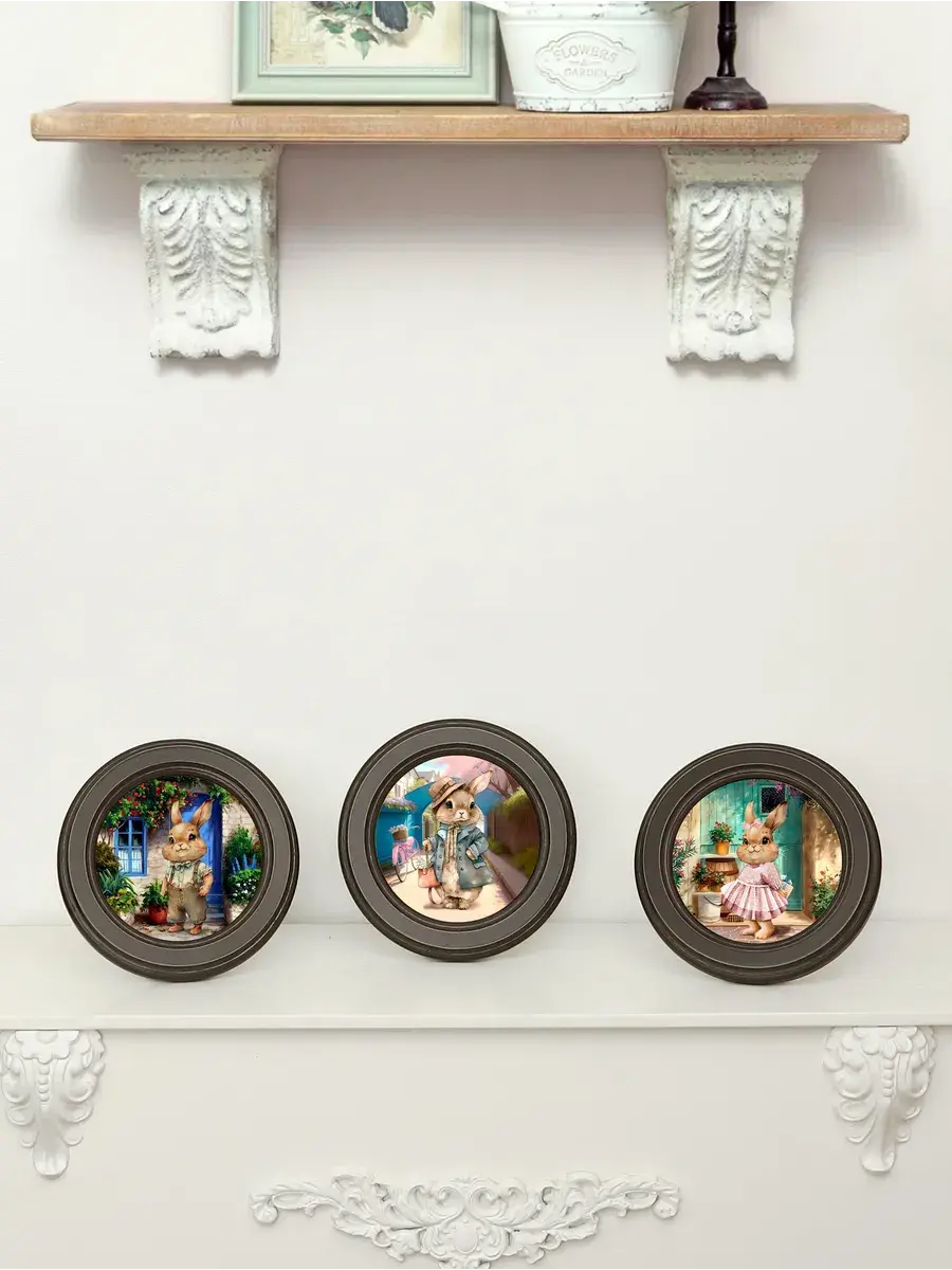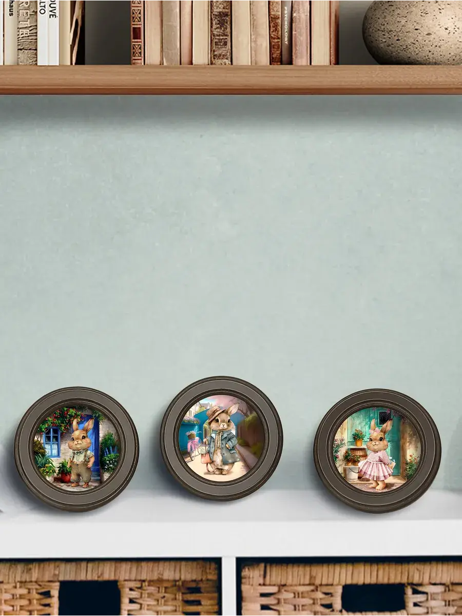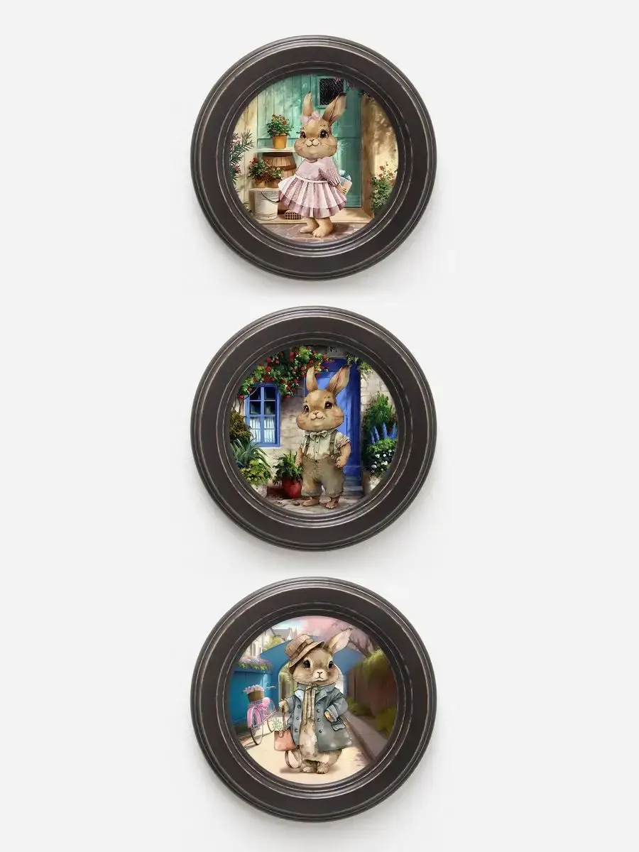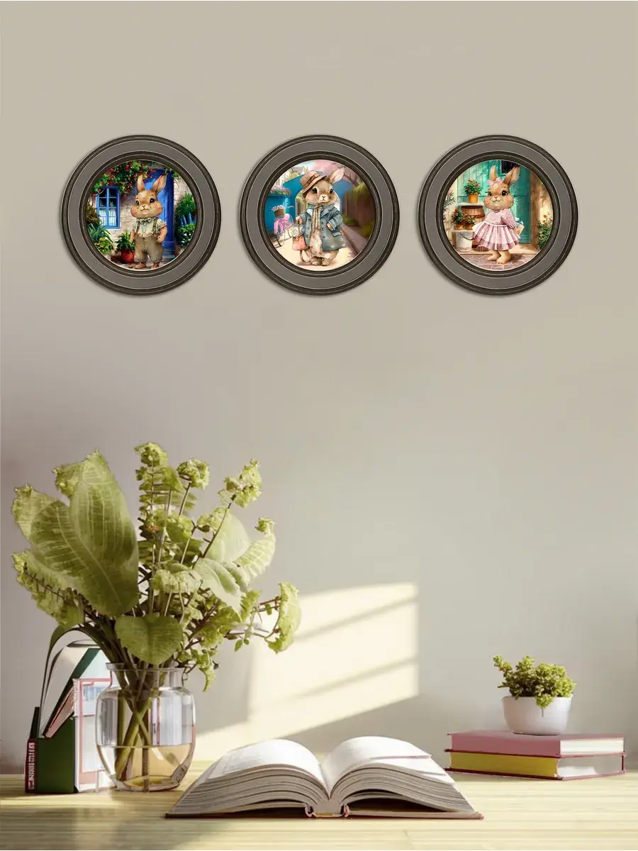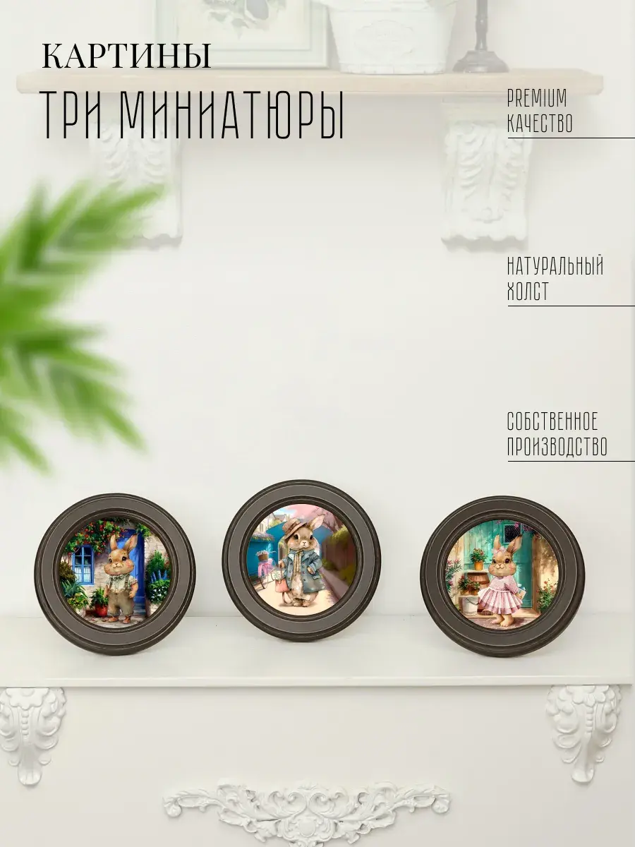 3 картины в круглой раме