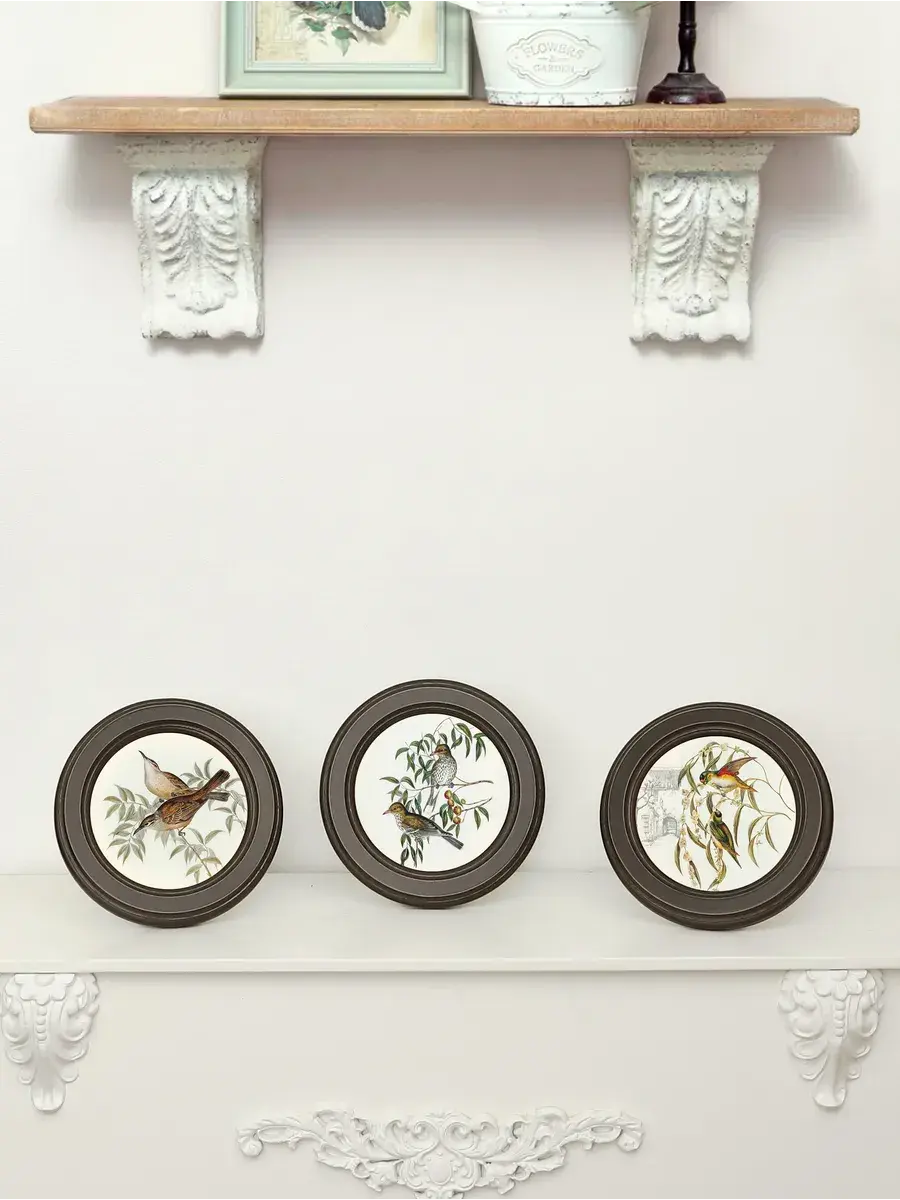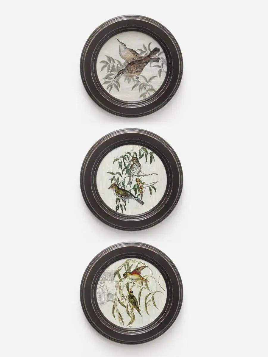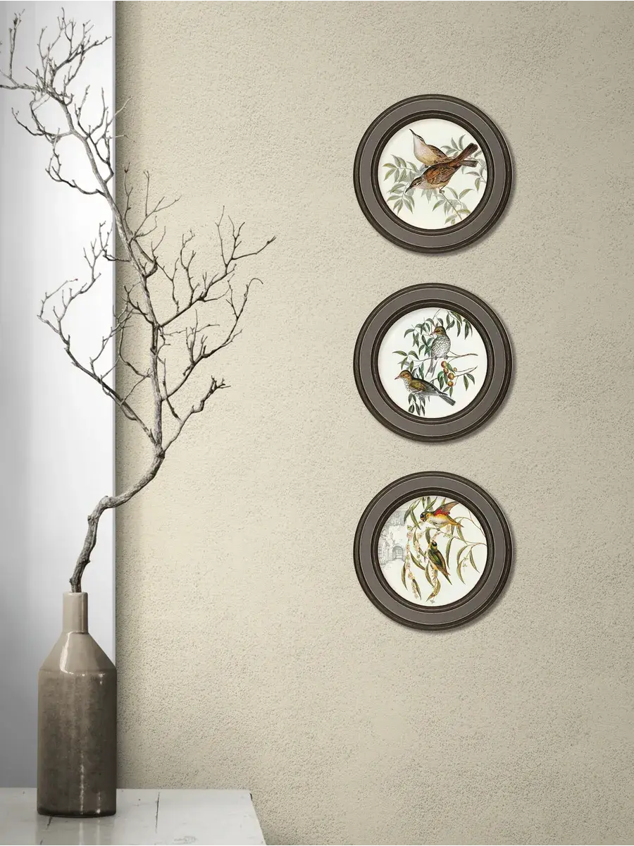 "Птички" в круглой деревянной раме, диаметр 17,5 см