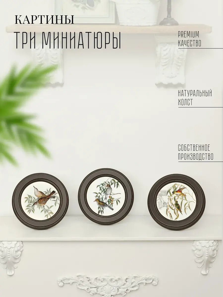 Картины напечатаны на натуральном холсте, покрыты матовым лаком в круглой раме станет прекрасным украшением интерьера. Множество вариантов дает возможность создать собственную коллекцию. Рама изготовлена из цельного листа МДФ 16 мм, не имеет зазоров и стыков. Окрашена экологичной акриловой эмалью в белый, коричневый, мятный цвет. Диаметр картины 17,5 см, диаметр изображения 12 см.