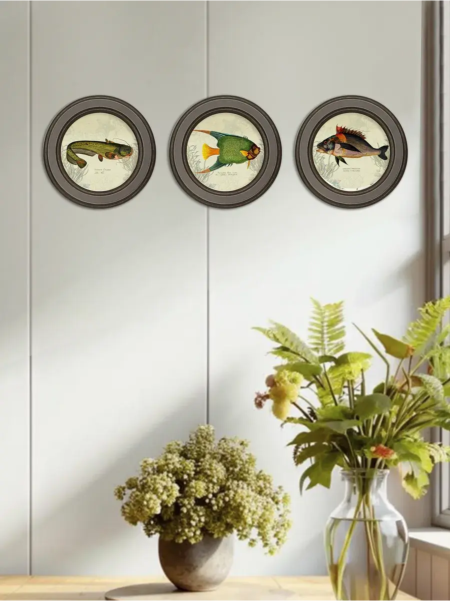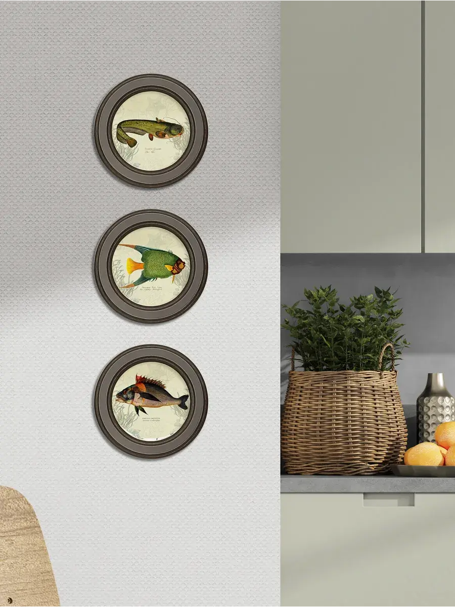 3 картины в круглой раме