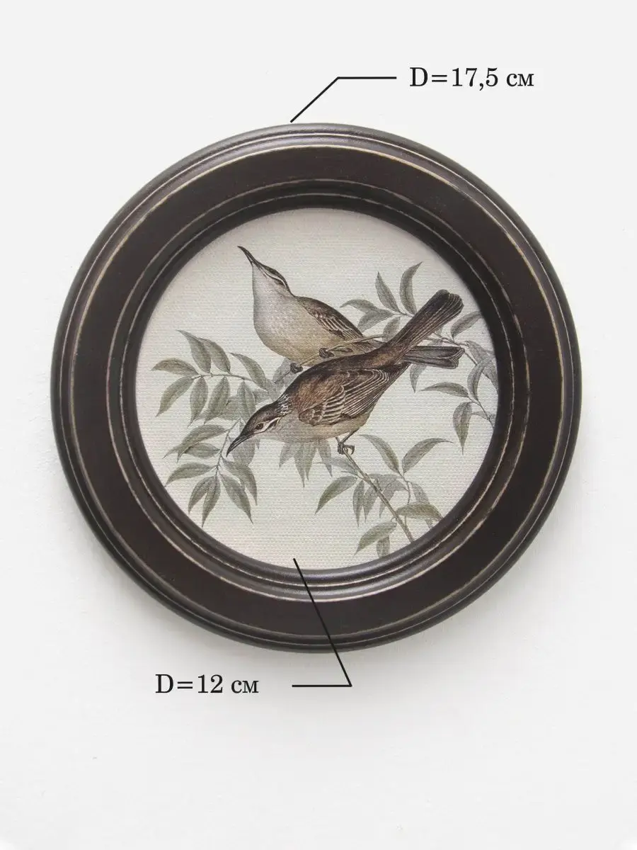 "Птички" в круглой деревянной раме, диаметр 17,5 см