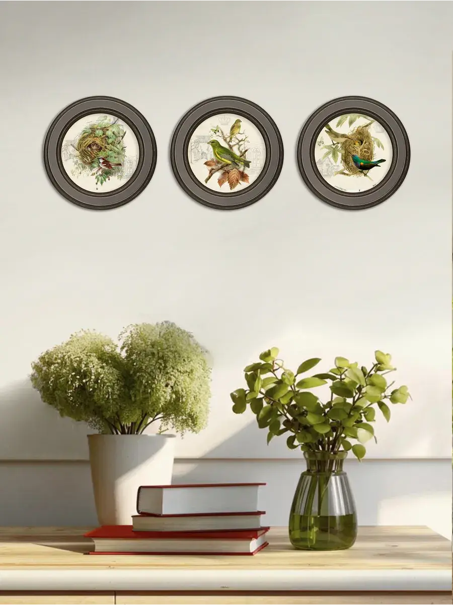 3 картины в круглой раме