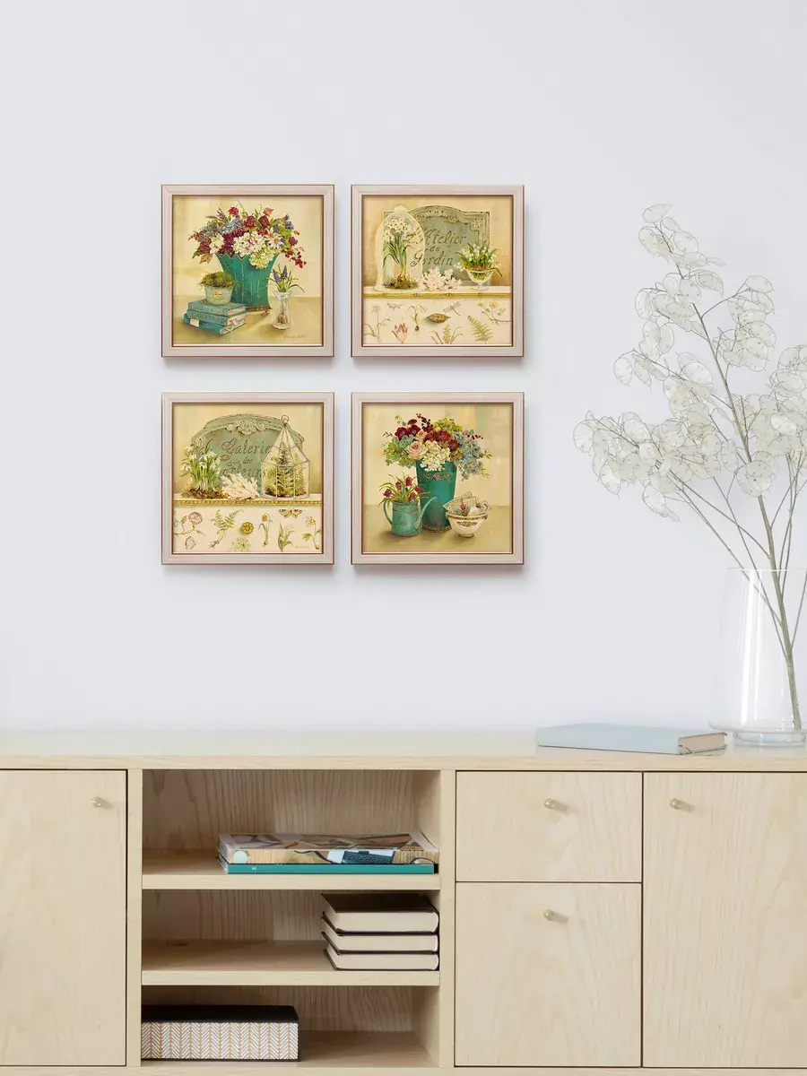 Внимание! Цвет багета изменился. Набор из четырех картин на натуральном холсте. Размер каждой картины 22.5*22.5 см. Настенный декор в раме, это современный способ украсить стены вашего дома и расслабить Вас после работы, атмосфера релакса, уюта и тепла. Картина напечатана в высоком разрешении на натуральном холсте, покрыта матовым лаком, размер холста 19х19 см, размер с рамой 22.5х22.5 см. В комплекте шуруп с дюбелем и зубчатый крепеж на раме. Рама из полиуретана спокойного молочного цвета. Картины предназначены для создания коллекций в гостиной, детской, прихожей, спальне или кухне. Украшение для дома и дачи, подарок в дом друзьям и коллегам. Картины упакованы в пакет и коробку.