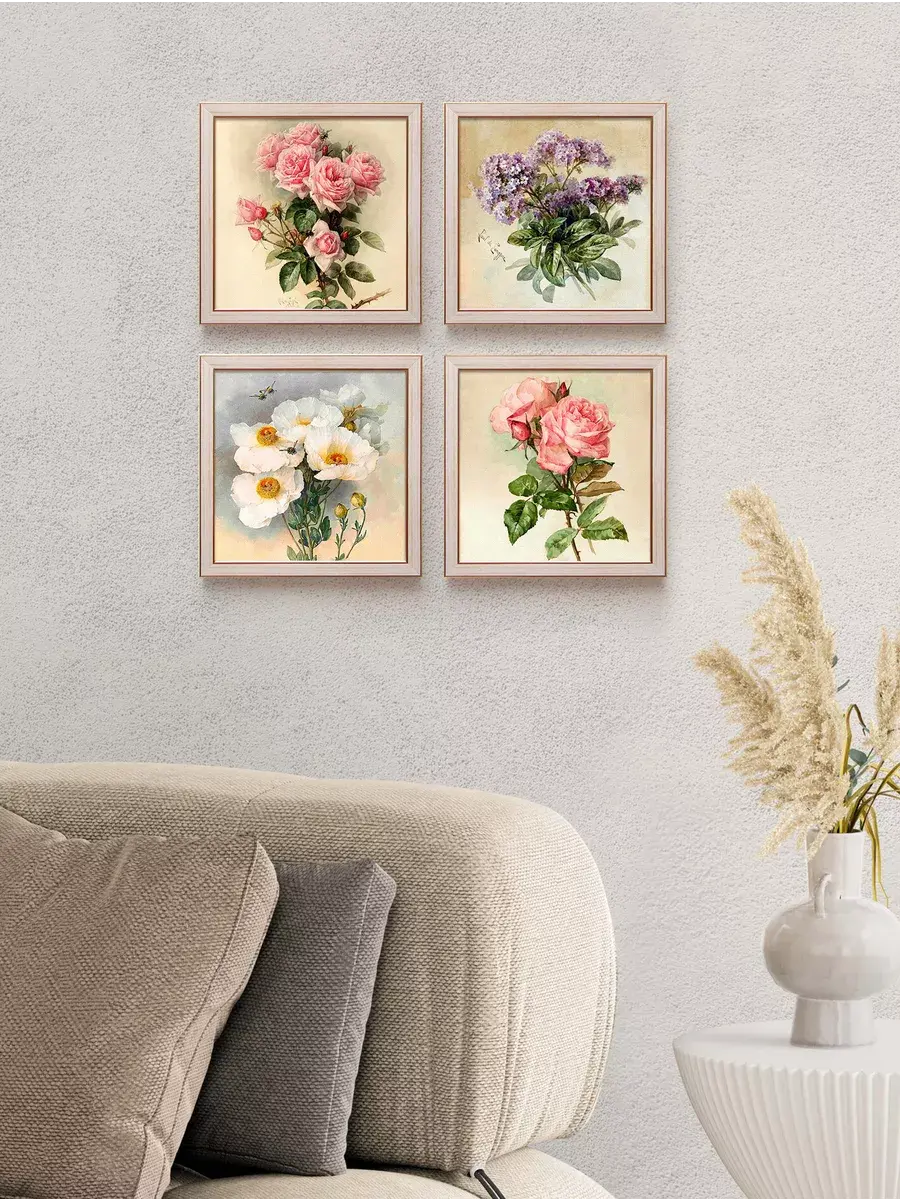 Набор из четырех картин на натуральном холсте. Размер каждой картины 23*23 см. Настенный декор в раме, это современный способ украсить стены вашего дома и расслабить Вас после работы, атмосфера релакса, уюта и тепла. Картина напечатана в высоком разрешении на натуральном холсте, покрыта матовым лаком, размер холста 19х19 см, размер с рамой 23*23см. В комплекте шуруп с дюбелем и зубчатый крепеж на раме. Рама из полиуретана спокойного бежевого цвета. Картины предназначены для создания коллекций в гостиной, детской, прихожей, спальне или кухне. Украшение для дома и дачи, подарок в дом друзьям и коллегам. Картины упакованы в пакет и коробку.