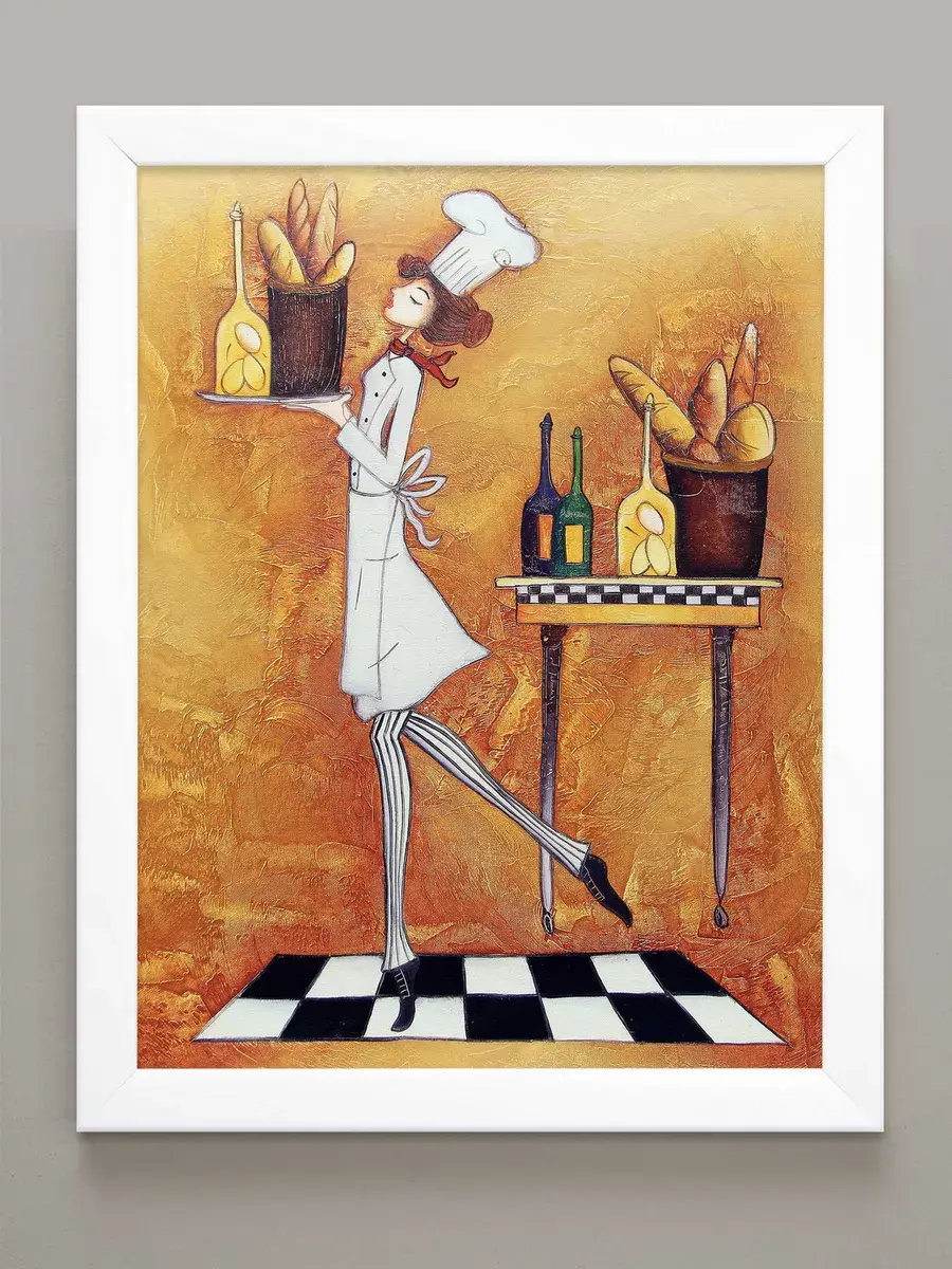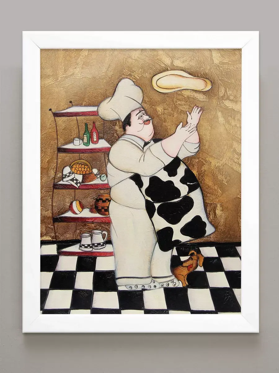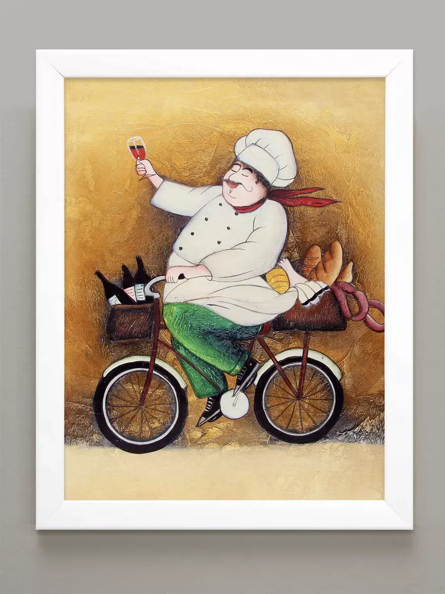 Набор из четырех картин на бумаге "Веселый повар". Размер каждой картины 20,5х26,5 см. Настенный декор в раме, это современный способ украсить стены вашего дома и расслабить Вас после работы, атмосфера релакса, уюта и тепла. Картина напечатана в высоком разрешении на высококачественной постерной бумаге и заламинирована, размер с рамой 20,5х26,5 см. В комплекте шуруп с дюбелем и зубчатый крепеж на раме. Рама из полиуретана белого цвета. Картины предназначены для создания коллекций в гостиной, детской, прихожей, спальне или кухне. Украшение для дома и дачи, подарок в дом друзьям и коллегам. Картины упакованы в пакет и коробку.