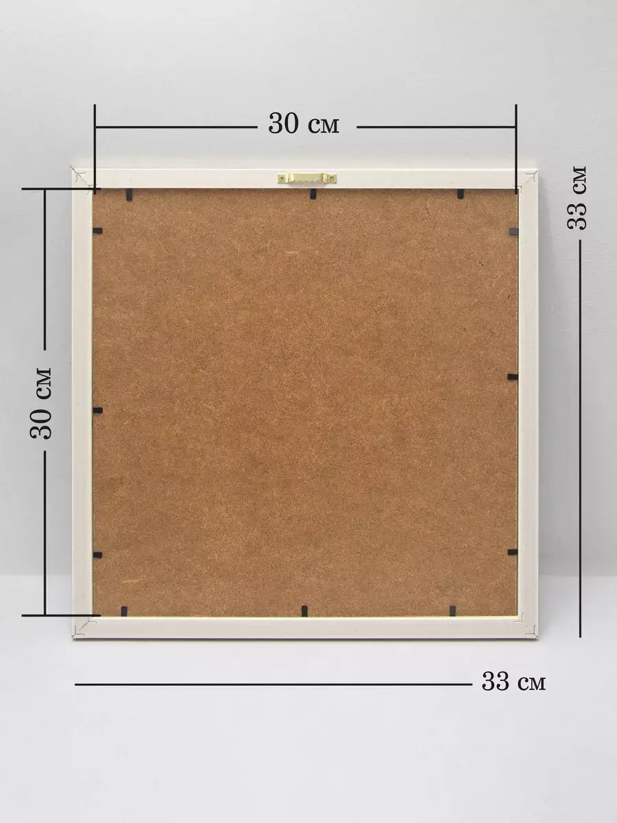 Картины напечатаны на натуральном холсте, покрыты лаком. Основа из ХДФ, что исключает провисание холста. Золотистая багетная рама по периметру картин. Размер каждой картины в раме 33*33 см.