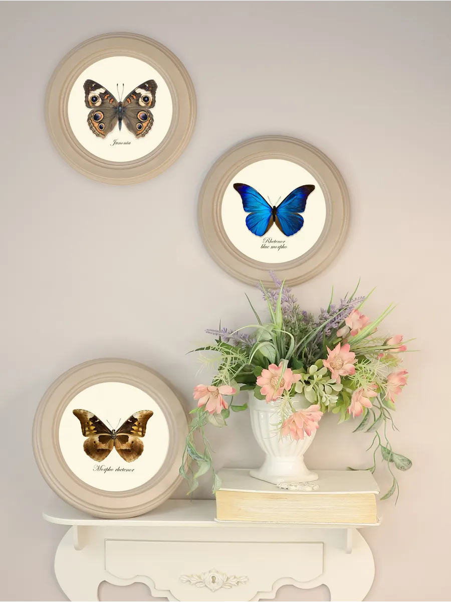 Настенный или настольный декор в нежных пастельный тонах с изящными бабочками в деревянной раме.