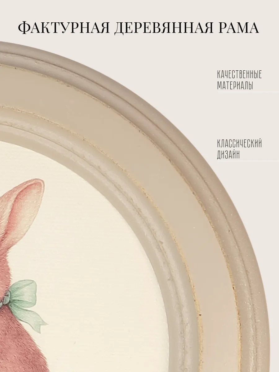 Картины напечатаны на натуральном холсте, покрыты матовым лаком в круглой раме станет прекрасным украшением интерьера. Множество вариантов дает возможность создать собственную коллекцию. Коллекцию можно дополнить зеркалом, оформить свои творческие работы или фотографии в раму. Рама изготовлена из цельного листа МДФ 16 мм, не имеет зазоров и стыков. Окрашена экологичной акриловой эмалью в цвет капучино. Диаметр картины 17,5 см, диаметр видимой части изображения 12 см.