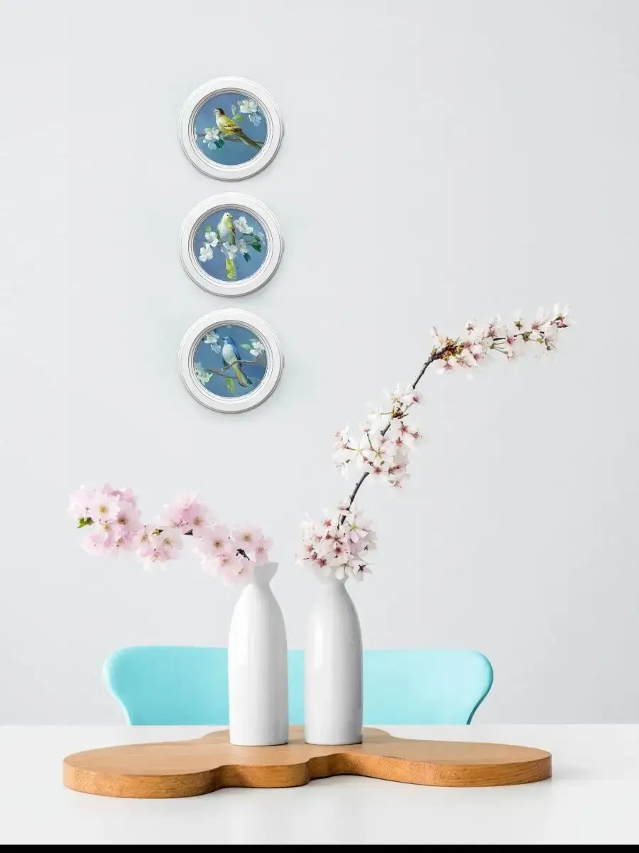 3 картины в круглой раме