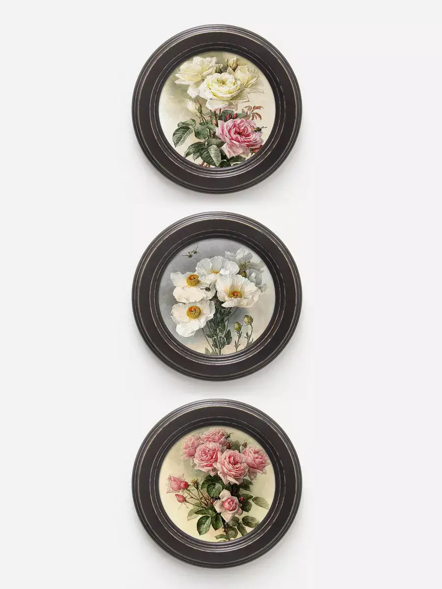 3 картины в круглой раме,