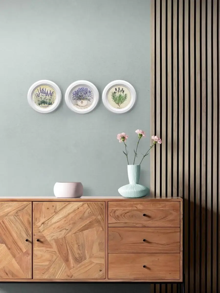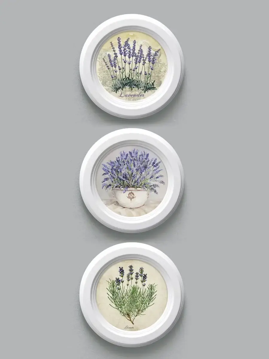 Настенный / настольный декор в стиле прованс с лавандой в белой деревянной раме. Набор из трех картин с разной лавандой для украшения интерьера дома или пасхального стола. Картины напечатаны на натуральном холсте, покрыты матовым лаком в круглой раме станет прекрасным украшением интерьера. Эта картина станет стильным акцентом в интерьере. Она идеально подойдет для оформления стен в различных помещениях: от кухни до спальни, от гостиной до прихожей. Настенное панно выполнено на холсте и отличается яркими цветами, изображающими цветы, что придаст уют и свежесть любому дому или квартире. Декоративное оформление в рамке добавит элегантности и завершенности, делая картину не только предметом декора, но и важной частью атмосферы вашего пространства. Это решение отлично впишется в интерьер офиса, зала или любой комнаты, создавая ощущение счастья и гармонии. Пусть данное предметы искусства придаст вашему дому индивидуальность и изысканный стиль.