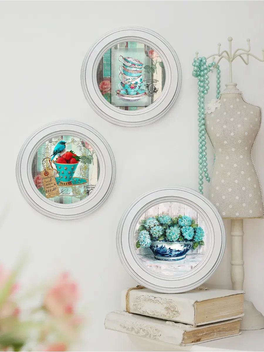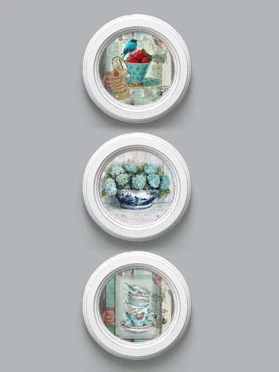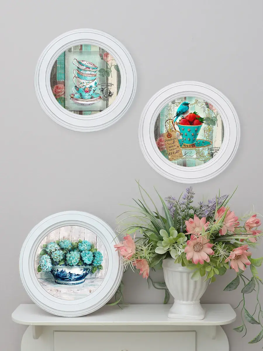 Множество вариантов дает возможность создать собственную коллекцию. Рама изготовлена из цельного листа МДФ 16 мм, не имеет зазоров и стыков. Окрашена экологичной акриловой эмалью в белый, коричневый, мятный цвет или с эффектом старения. Диаметр картины 17,5 см, диаметр изображения 12 см. Крепление для стены и для установки на стол в комплекте.