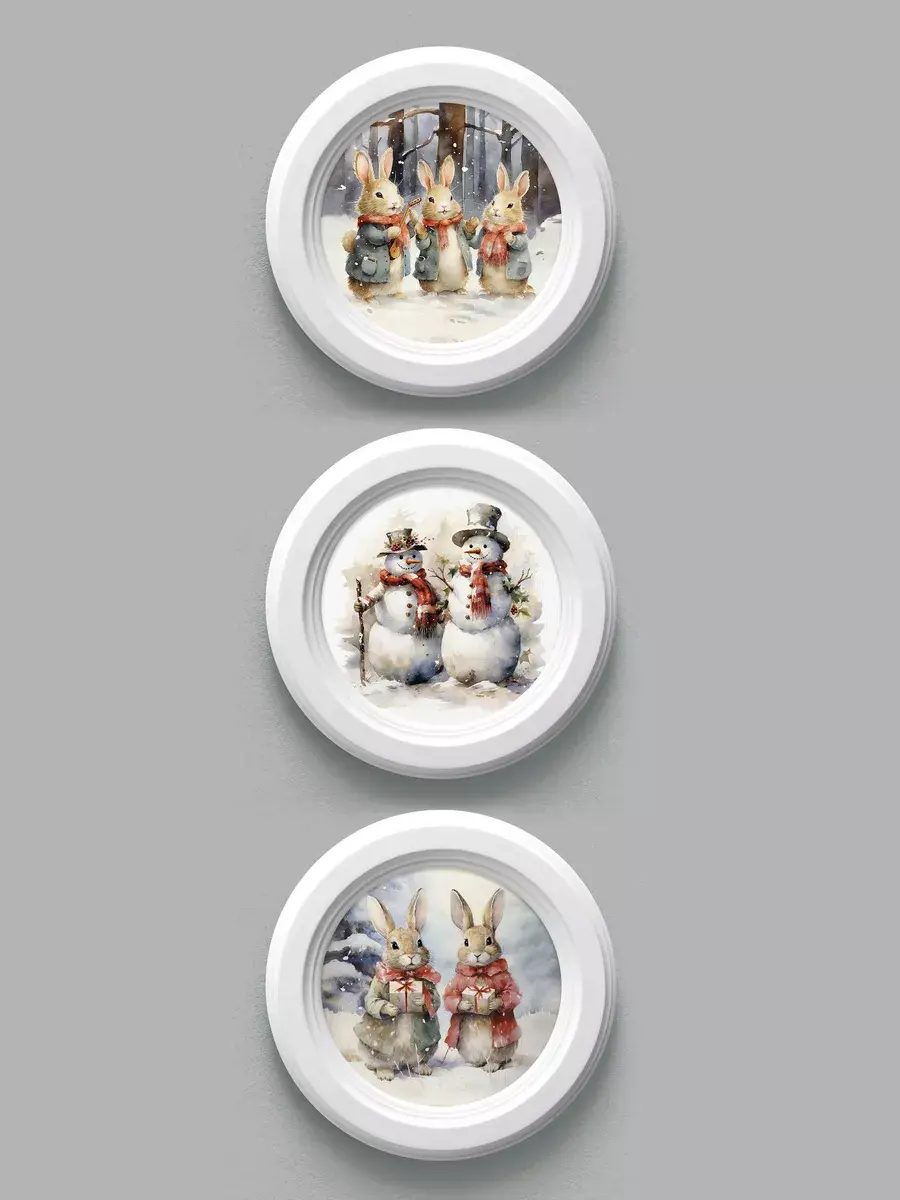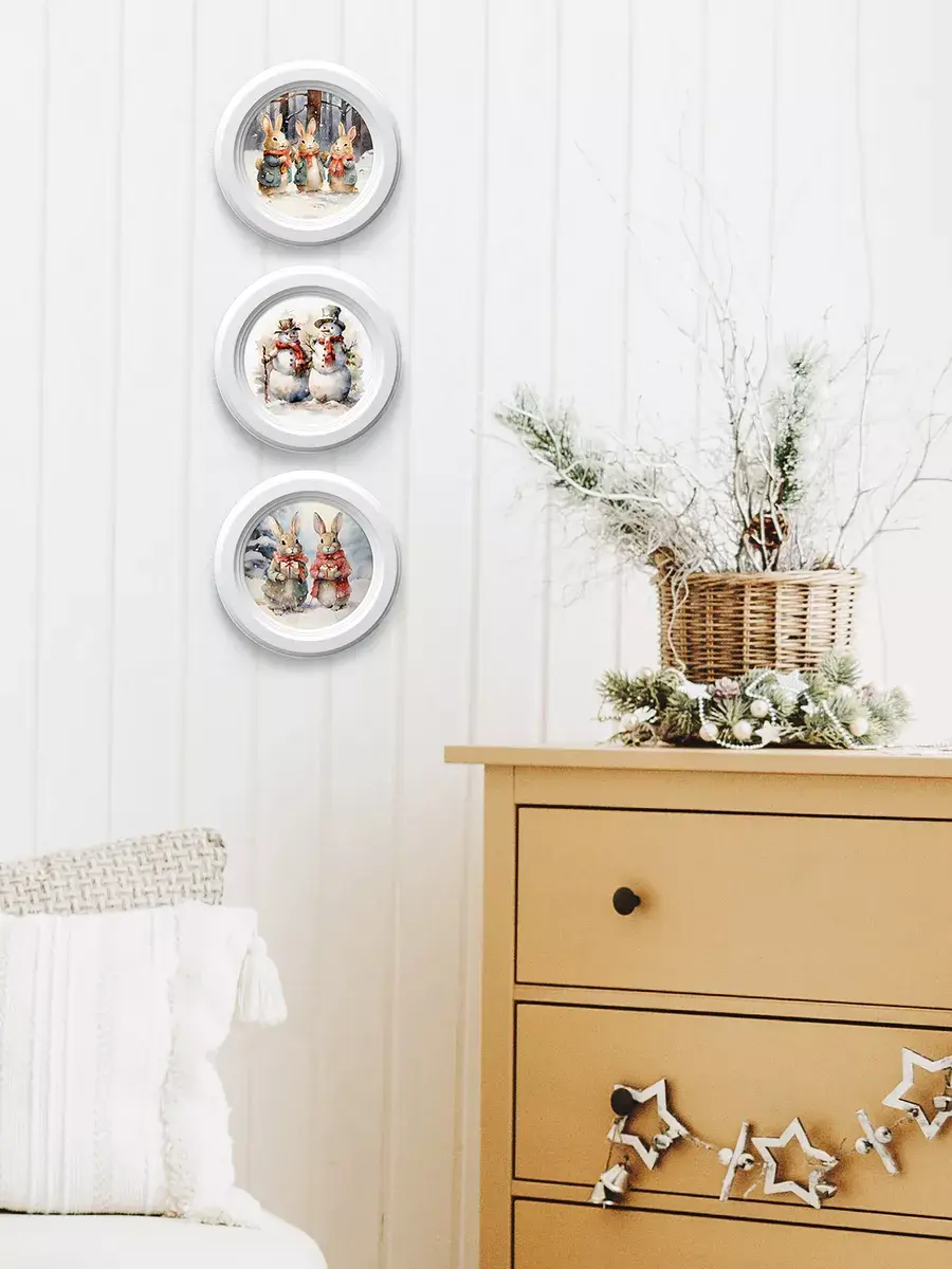3 картины в круглой раме