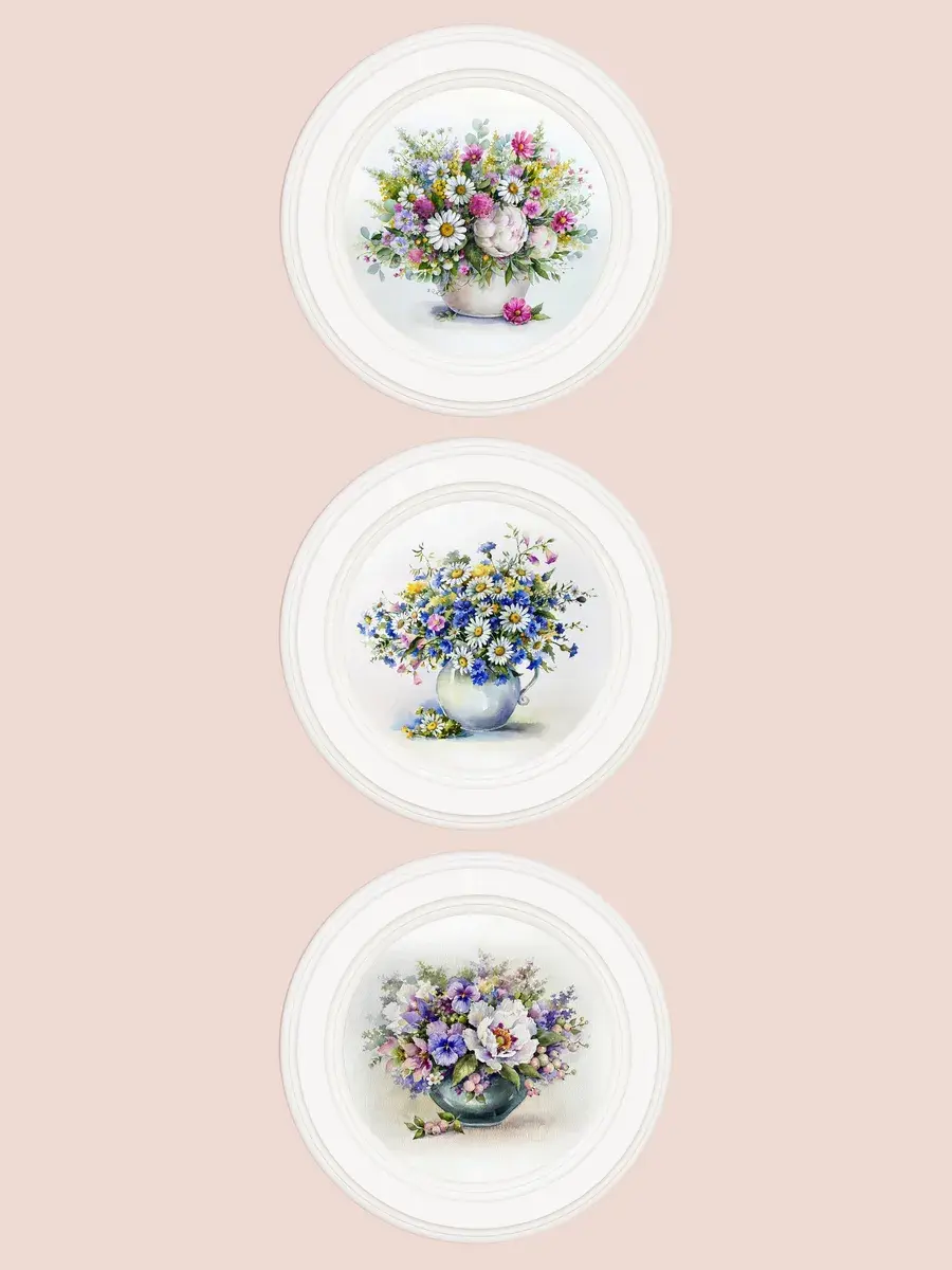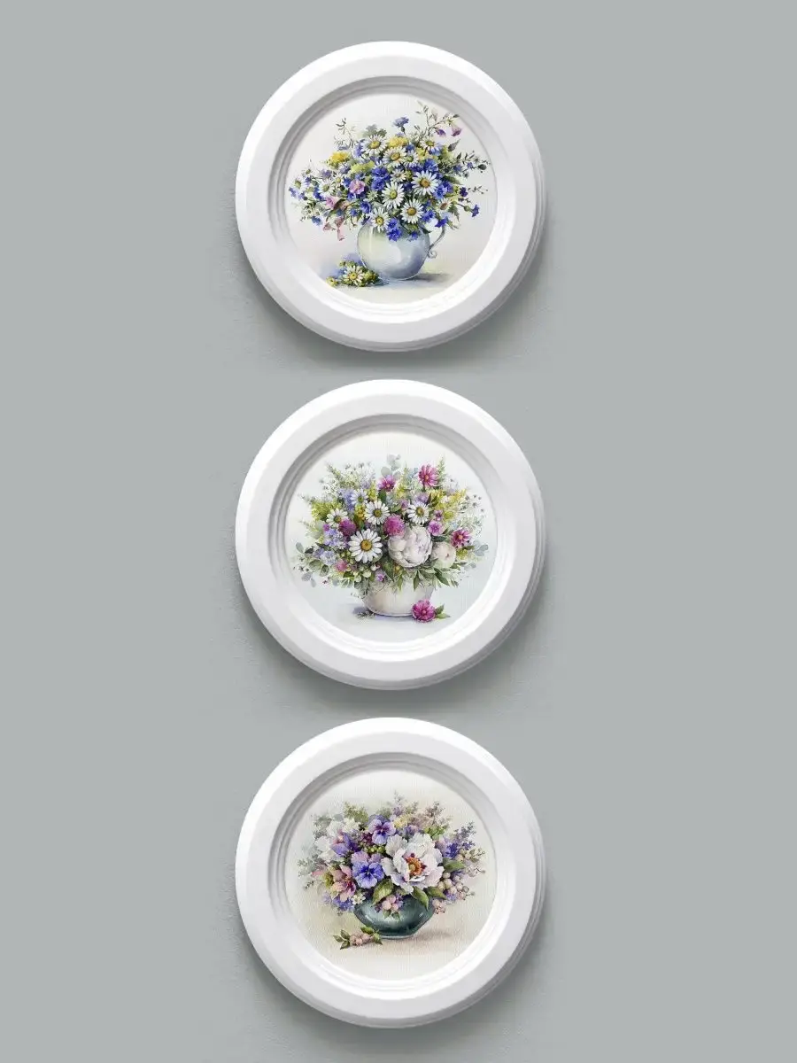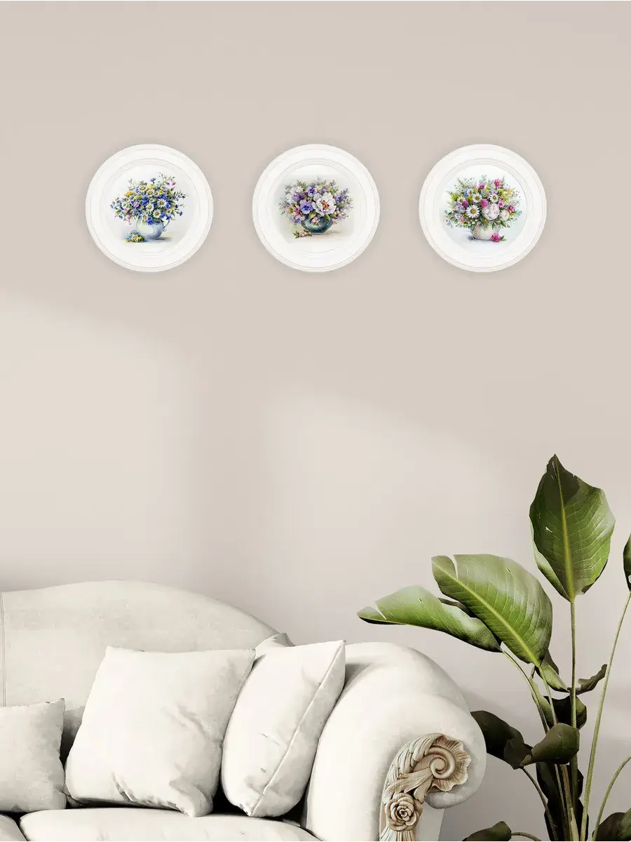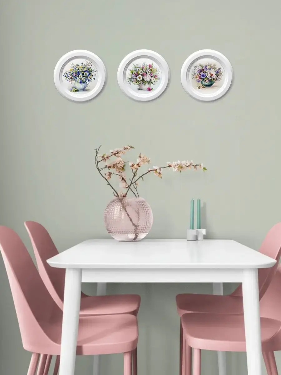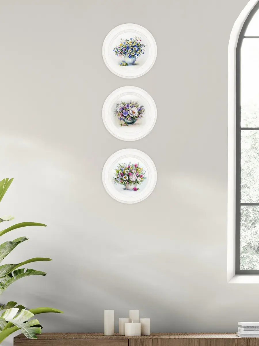 3 картины в круглой раме