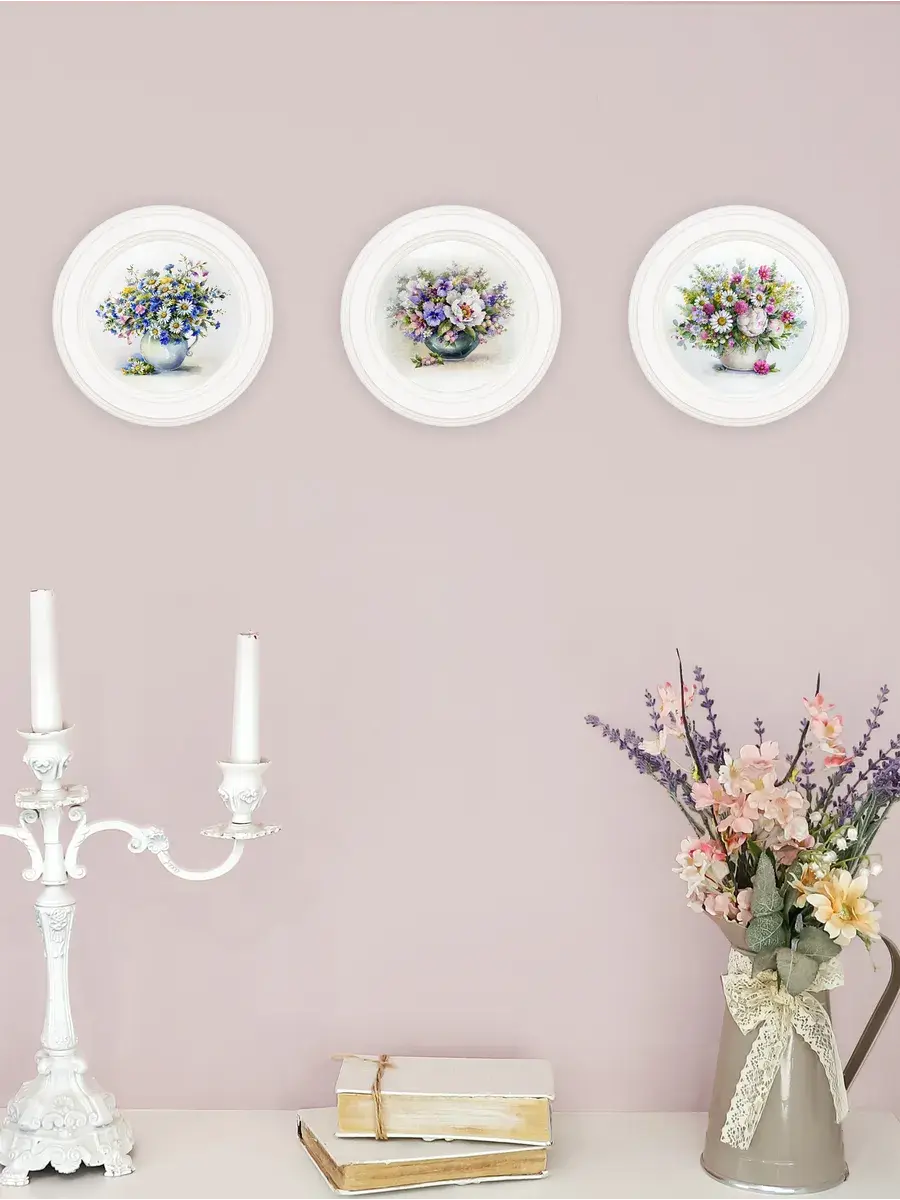 Настенный / настольный декор в стиле прованс с лавандой в белой деревянной раме. Набор из трех картин с разной лавандой для украшения интерьера дома или пасхального стола. Картины напечатаны на натуральном холсте, покрыты матовым лаком в круглой раме станет прекрасным украшением интерьера. Эта картина станет стильным акцентом в интерьере. Она идеально подойдет для оформления стен в различных помещениях: от кухни до спальни, от гостиной до прихожей. Настенное панно выполнено на холсте и отличается яркими цветами, изображающими цветы, что придаст уют и свежесть любому дому или квартире. Декоративное оформление в рамке добавит элегантности и завершенности, делая картину не только предметом декора, но и важной частью атмосферы вашего пространства. Это решение отлично впишется в интерьер офиса, зала или любой комнаты, создавая ощущение счастья и гармонии. Пусть данное предметы искусства придаст вашему дому индивидуальность и изысканный стиль.