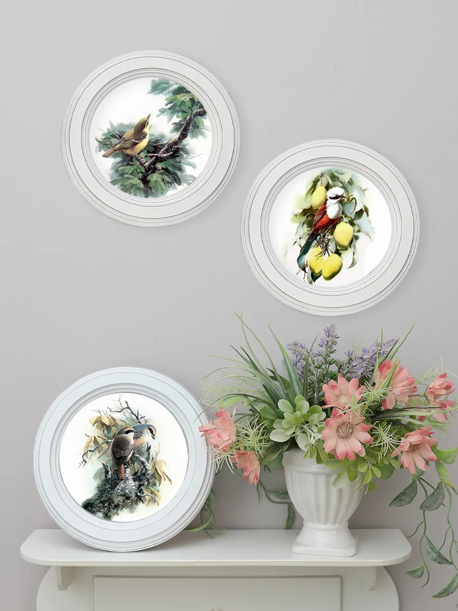 Настенный или настольный декор в нежных пастельный тонах с изящными птичками или цветочками в деревянной раме. Картины напечатаны на натуральном холсте, покрыты матовым лаком в круглой раме станет прекрасным украшением интерьера кухни, гостиной, детской. Картину можно повесить на стену, а так же использовать как настольный декор. Множество вариантов дает возможность создать собственную коллекцию. Коллекцию можно дополнить зеркалом, оформить свои творческие работы или фотографии в раму. Рама изготовлена из цельного листа МДФ 16 мм, не имеет зазоров и стыков. Окрашена экологичной акриловой эмалью в белый, коричневый, мятный цвет. Диаметр картины 17,5 см, диаметр изображения 12 см. Крепление для стены и для установки на стол в комплекте.