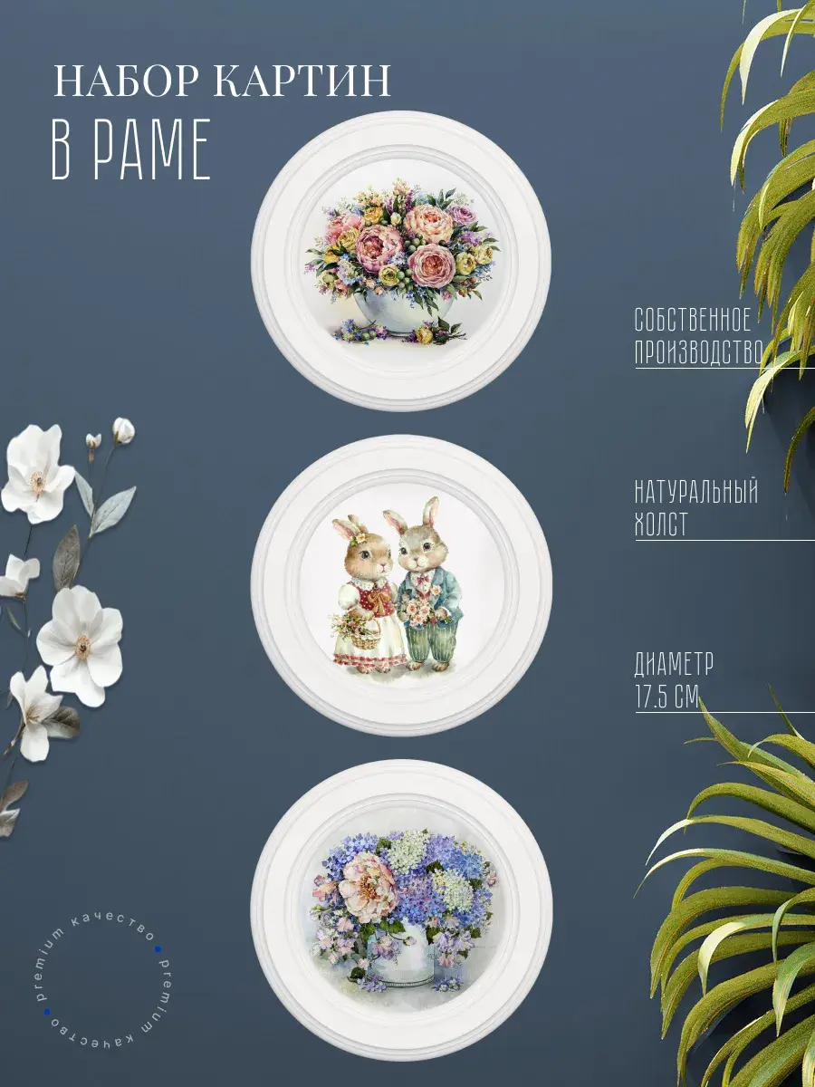 Настенный или настольный декор в нежных пастельный тонах с изящными птичками или цветочками в деревянной раме. Картины напечатаны на натуральном холсте, покрыты матовым лаком в круглой раме станет прекрасным украшением интерьера кухни, гостиной, детской. Картину можно повесить на стену, а так же использовать как настольный декор. Множество вариантов дает возможность создать собственную коллекцию. Коллекцию можно дополнить зеркалом, оформить свои творческие работы или фотографии в раму. Рама изготовлена из цельного листа МДФ 16 мм, не имеет зазоров и стыков. Окрашена экологичной акриловой эмалью в белый, коричневый, мятный цвет. Диаметр картины 17,5 см, диаметр изображения 12 см. Крепление для стены и для установки на стол в комплекте.