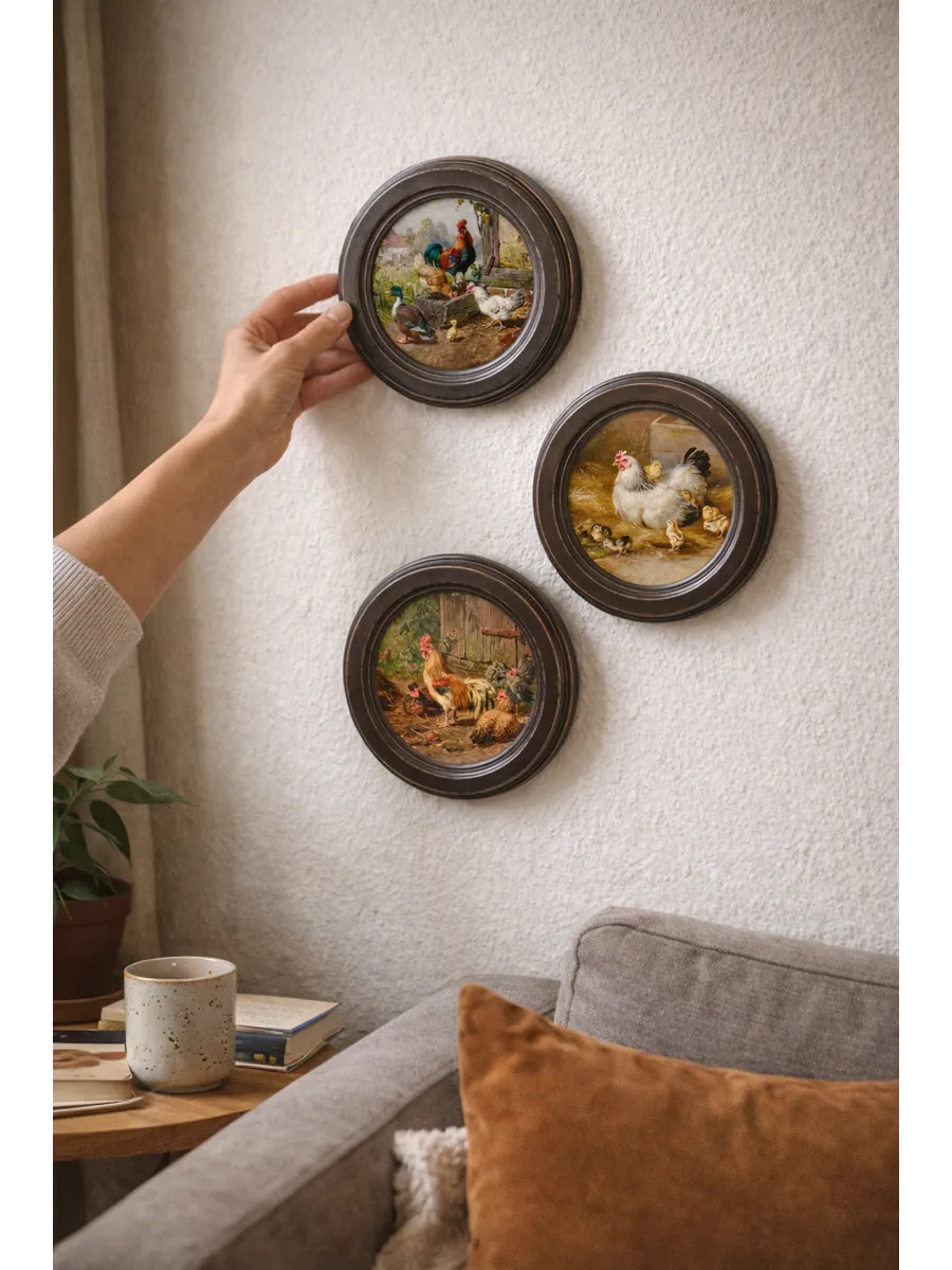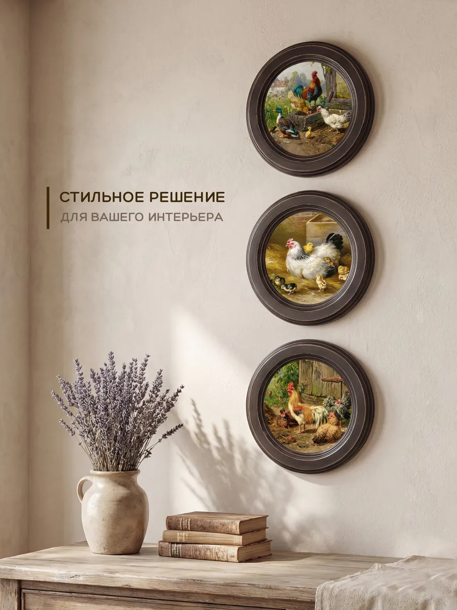 3 картины в круглой раме