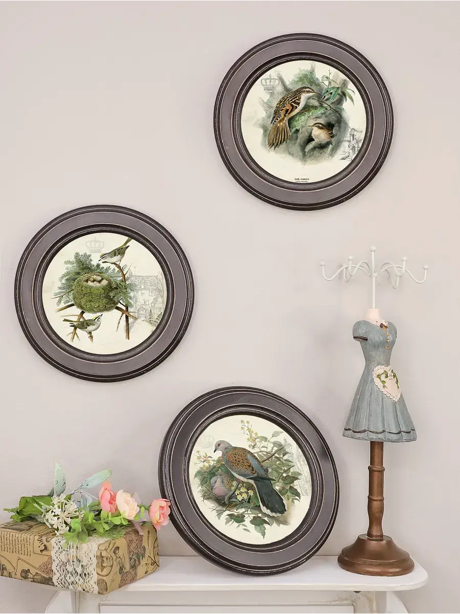 Настенный или настольный декор в нежных пастельный тонах с изящными птичками или цветочками в деревянной раме. Картины напечатаны на натуральном холсте, покрыты матовым лаком в круглой раме станет прекрасным украшением интерьера кухни, гостиной, детской. Картину можно повесить на стену, а так же использовать как настольный декор. Множество вариантов дает возможность создать собственную коллекцию. Коллекцию можно дополнить зеркалом, оформить свои творческие работы или фотографии в раму. Рама изготовлена из цельного листа МДФ 16 мм, не имеет зазоров и стыков. Окрашена экологичной акриловой эмалью в белый, коричневый, мятный цвет. Диаметр картины 17,5 см, диаметр изображения 12 см. Крепление для стены и для установки на стол в комплекте.