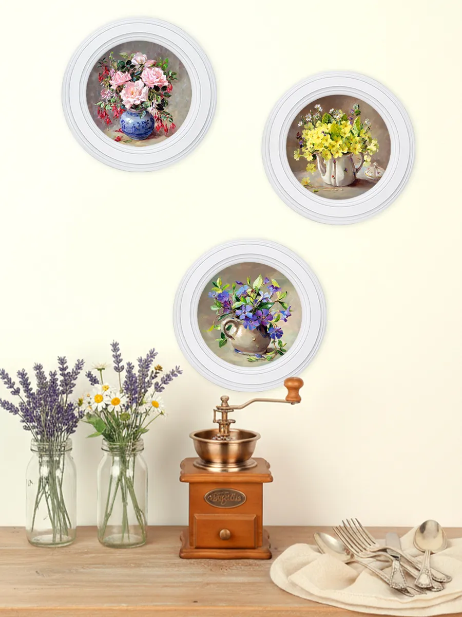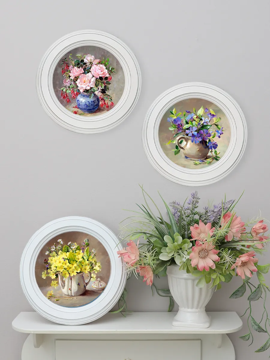3 картины в круглой раме,