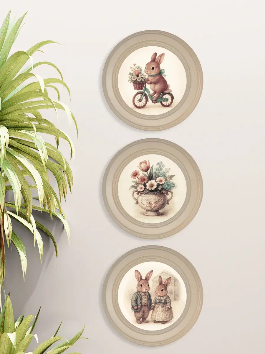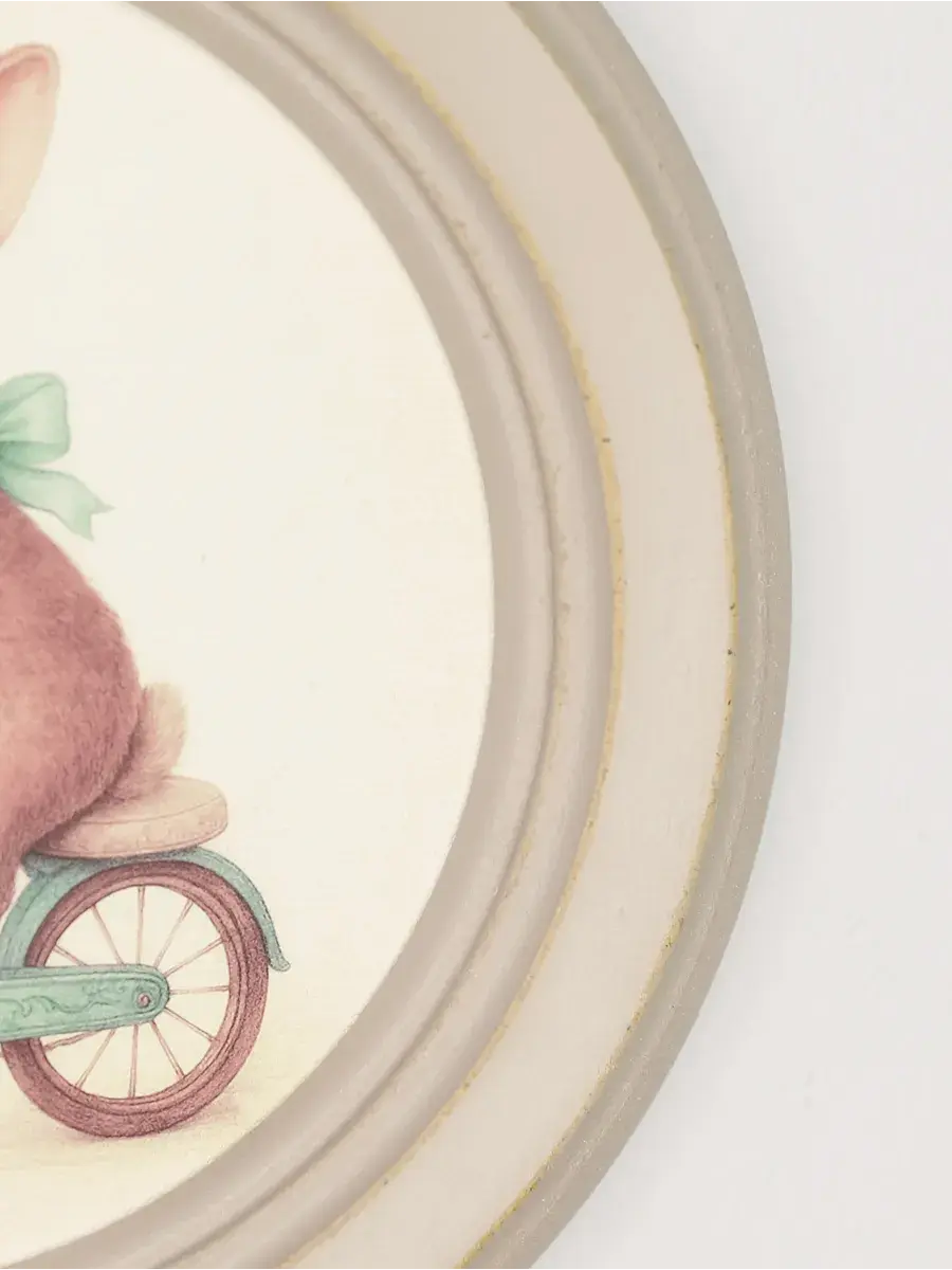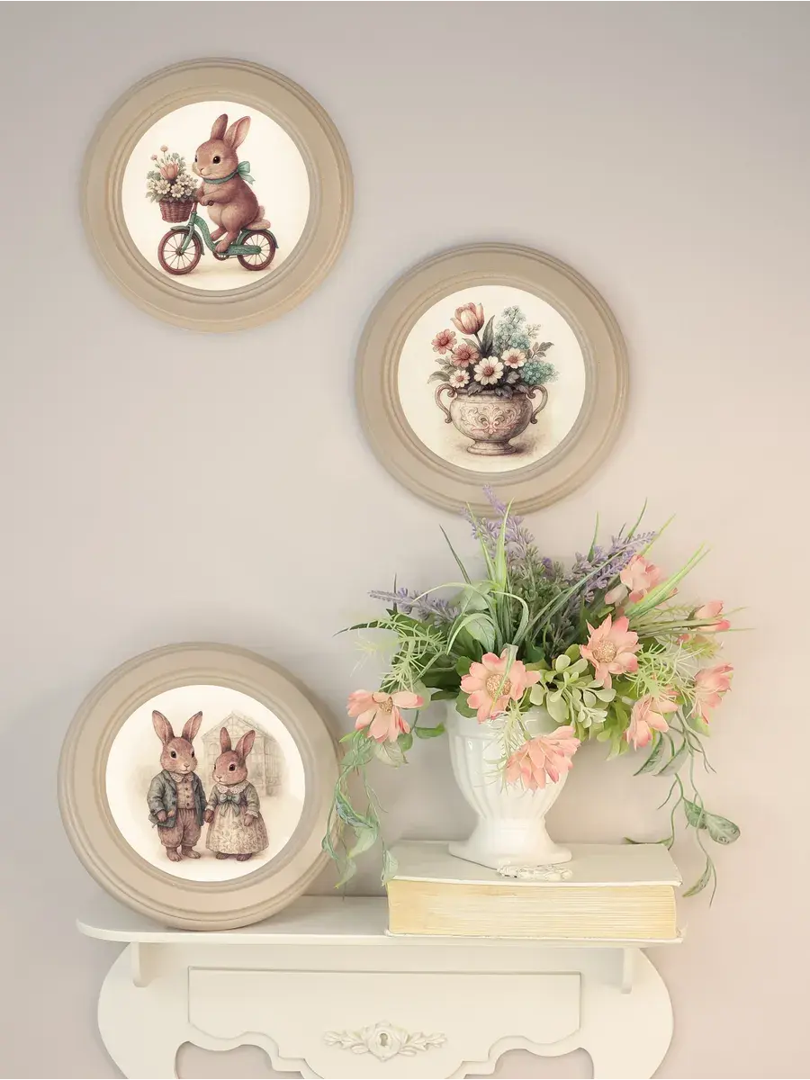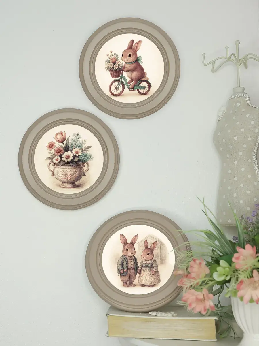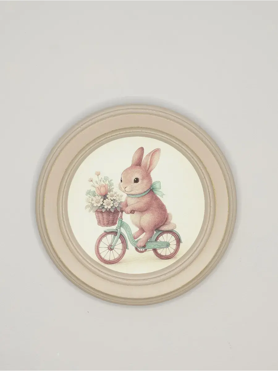 Настенный или настольный декор в нежных пастельный тонах с изящными зайчиками и цветочками в деревянной раме.