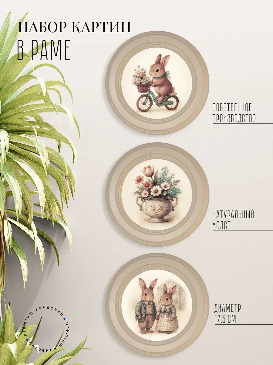Картины напечатаны на натуральном холсте, покрыты матовым лаком в круглой раме станет прекрасным украшением интерьера. Множество вариантов дает возможность создать собственную коллекцию. Коллекцию можно дополнить зеркалом, оформить свои творческие работы или фотографии в раму. Рама изготовлена из цельного листа МДФ 16 мм, не имеет зазоров и стыков. Окрашена экологичной акриловой эмалью в цвет капучино. Диаметр картины 17,5 см, диаметр видимой части изображения 12 см.