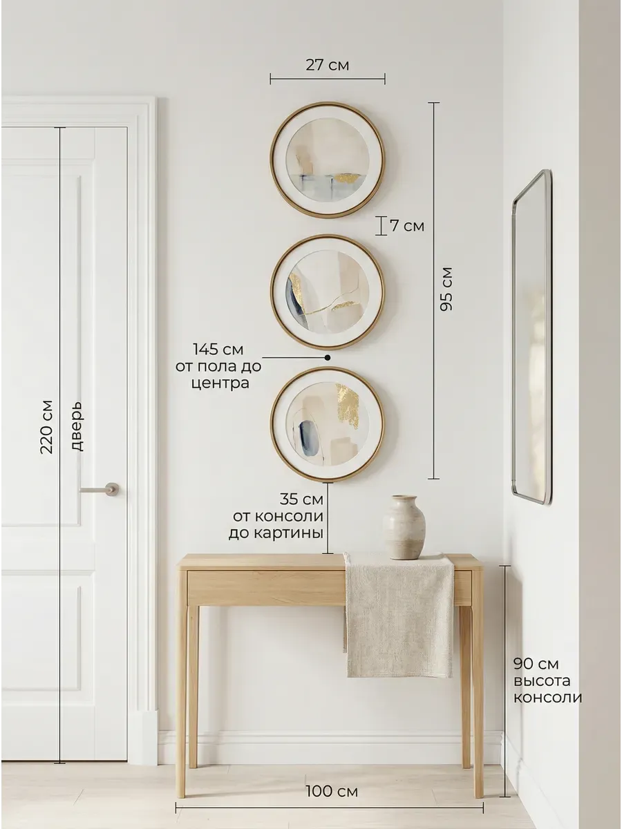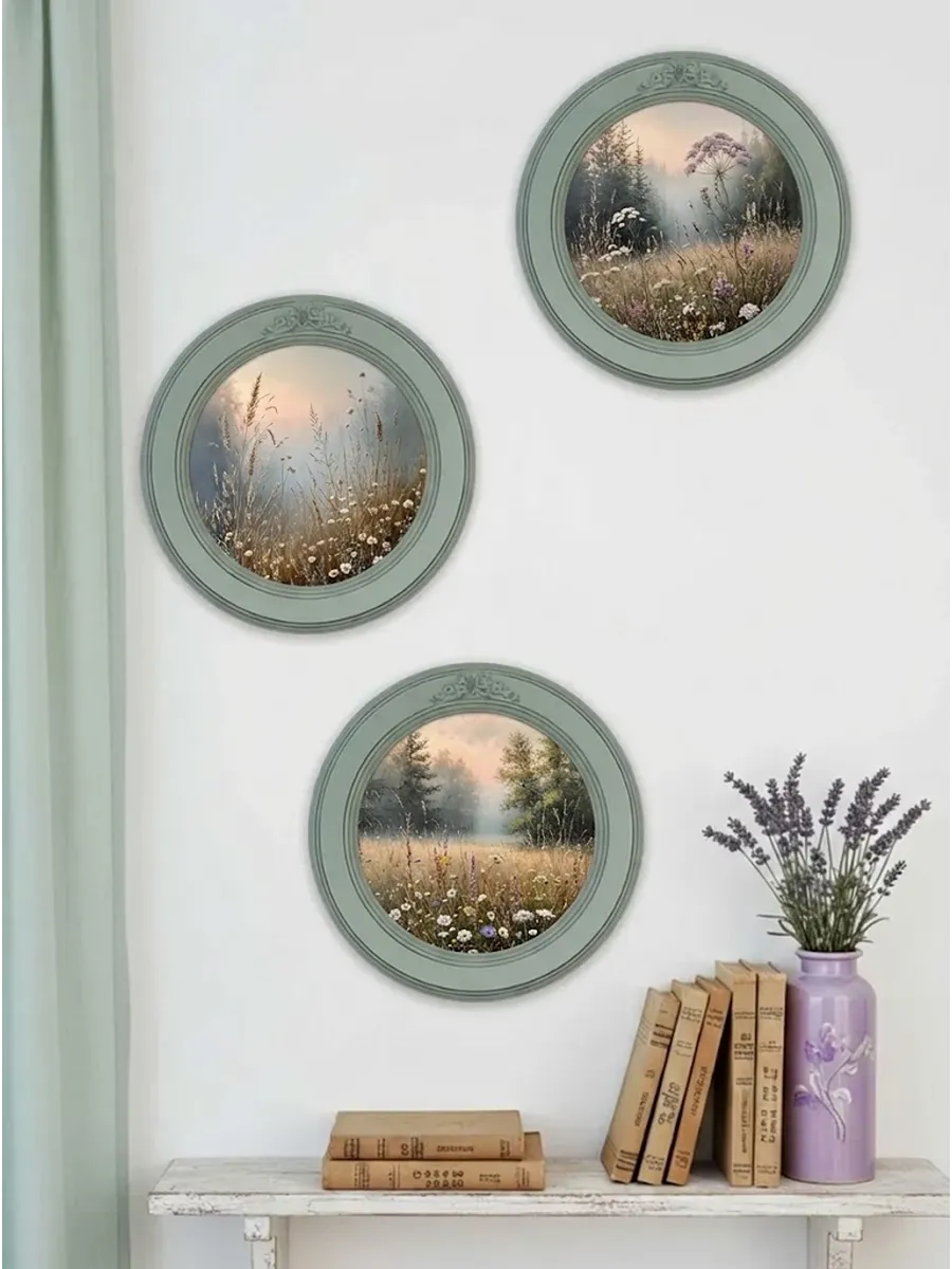 3 картины в круглой раме